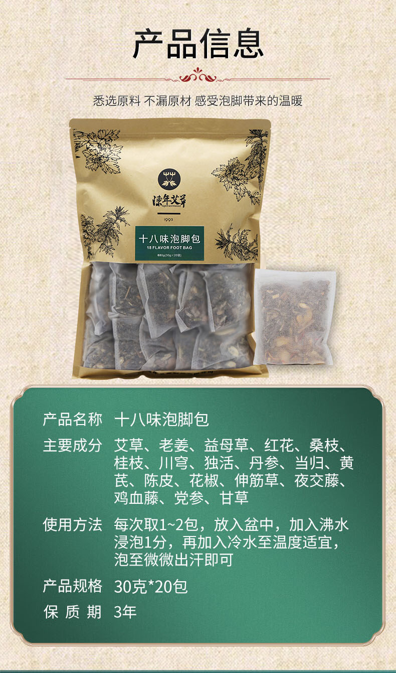 十八味泡脚包(排寒祛shi艾草草本足浴包)20包