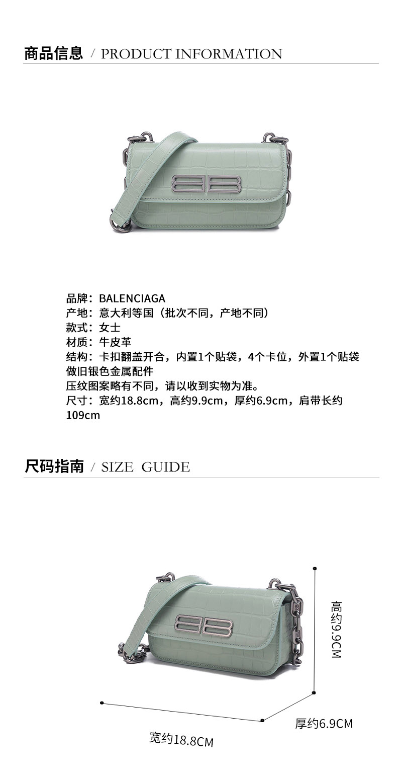 Balenciaga/巴黎世家 【22春夏新款】 女士GOSSIP系列牛皮革BB标识单肩斜挎包加小号XS码 679863 23ECY