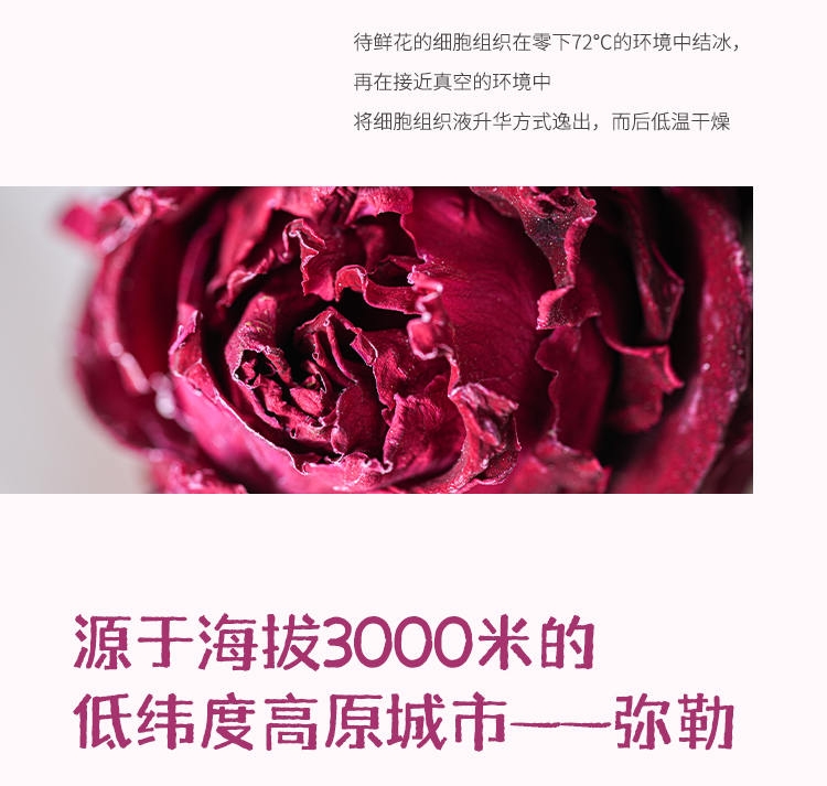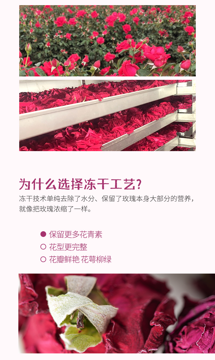头茬冻干墨红玫瑰 天然无硫熏 -72℃冻干保鲜 云南高原基地,核心玫瑰产区