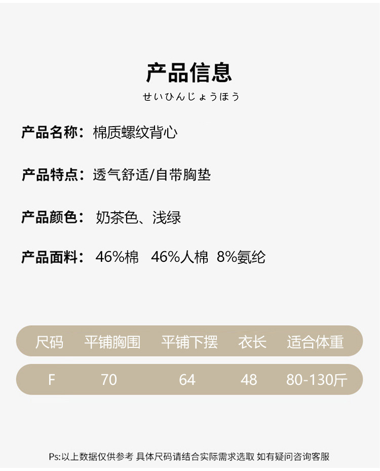 【女士棉质螺纹背心】棉质螺纹背心吊带胸垫女内搭外穿打底美背固定杯文胸