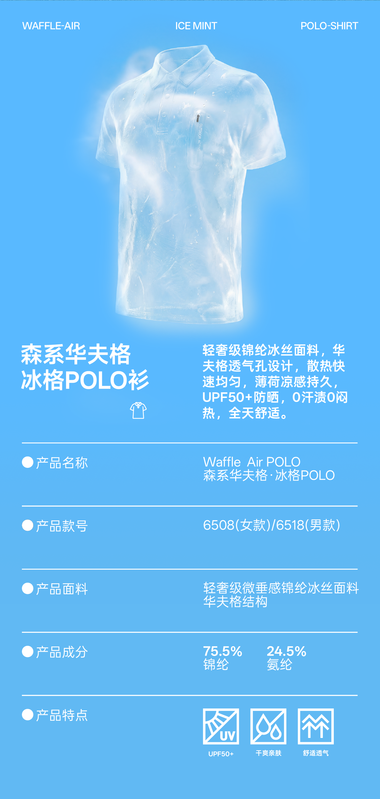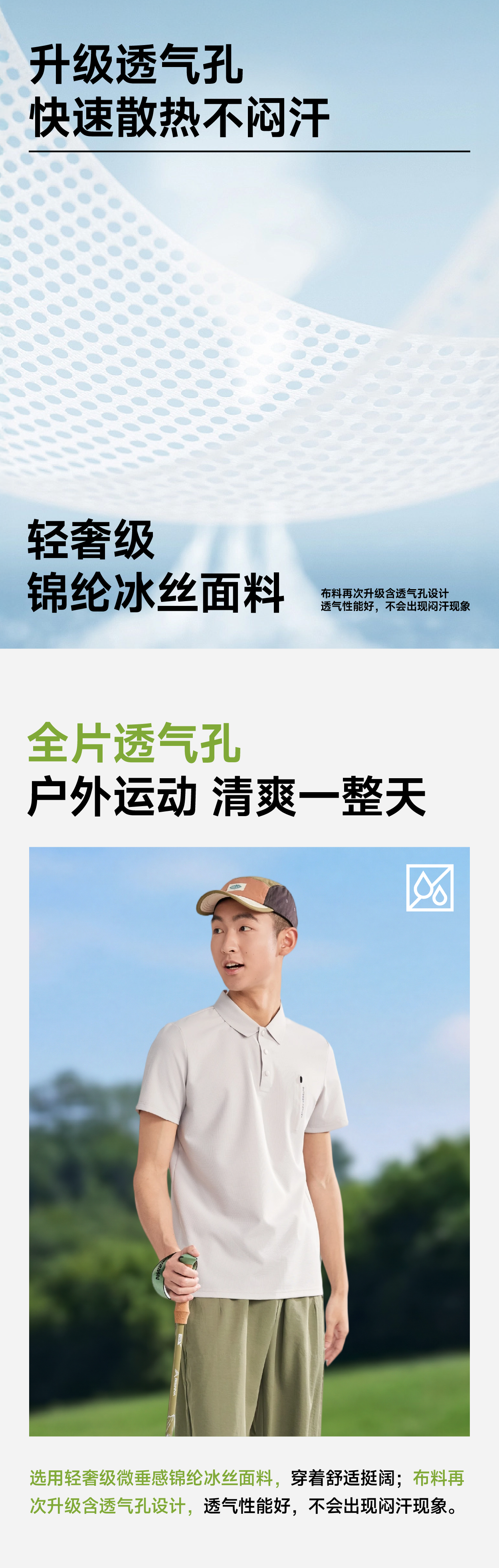 【厚盛--森系华夫格冰格POLO衫】轻奢级微垂感锦纶冰丝面料、华夫格透气孔结构设计、薄荷冰凉感性能、3D立体剪裁正肩版型、凉感防晒修饰身形、男女同款时尚休闲又百搭