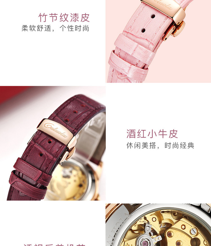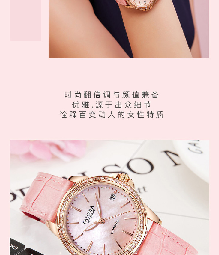 卡罗莱女表机械表女士手表防水时尚款皮带简约腕表 CA1201ML