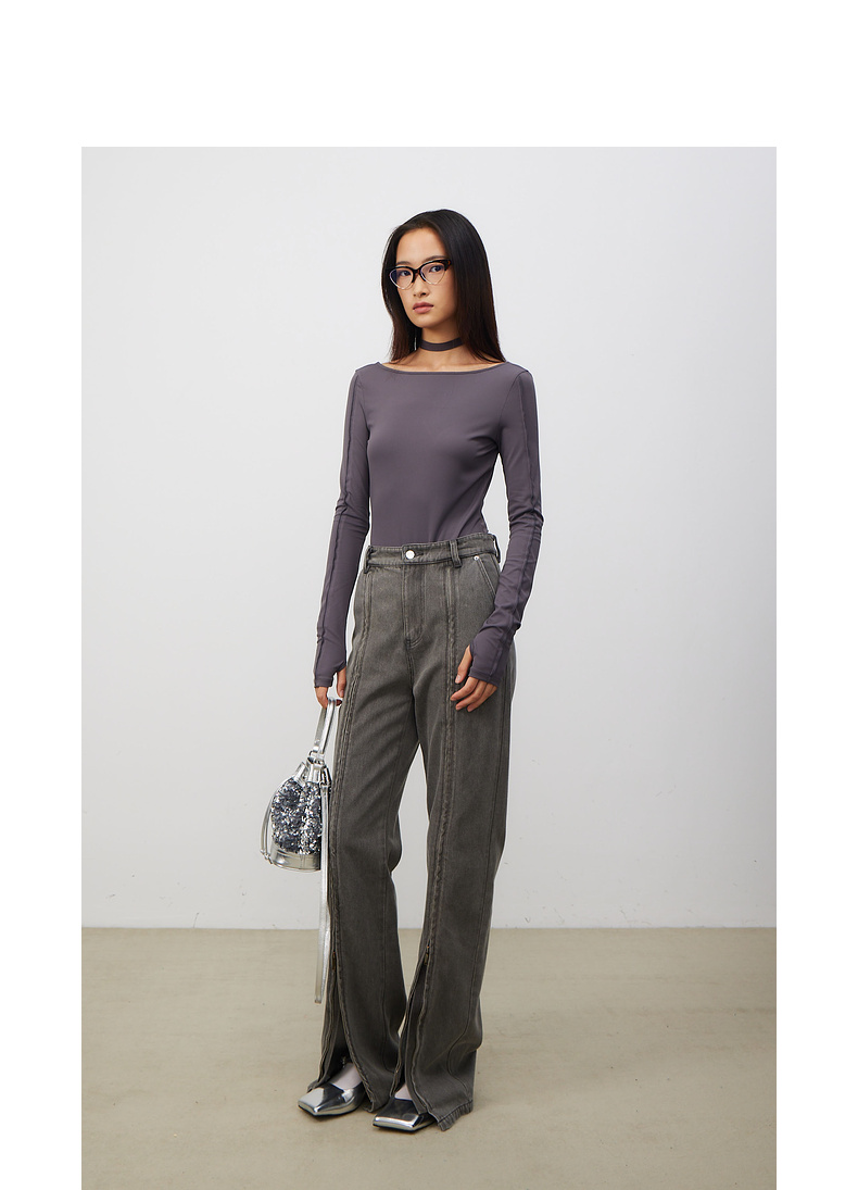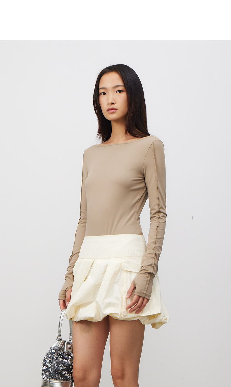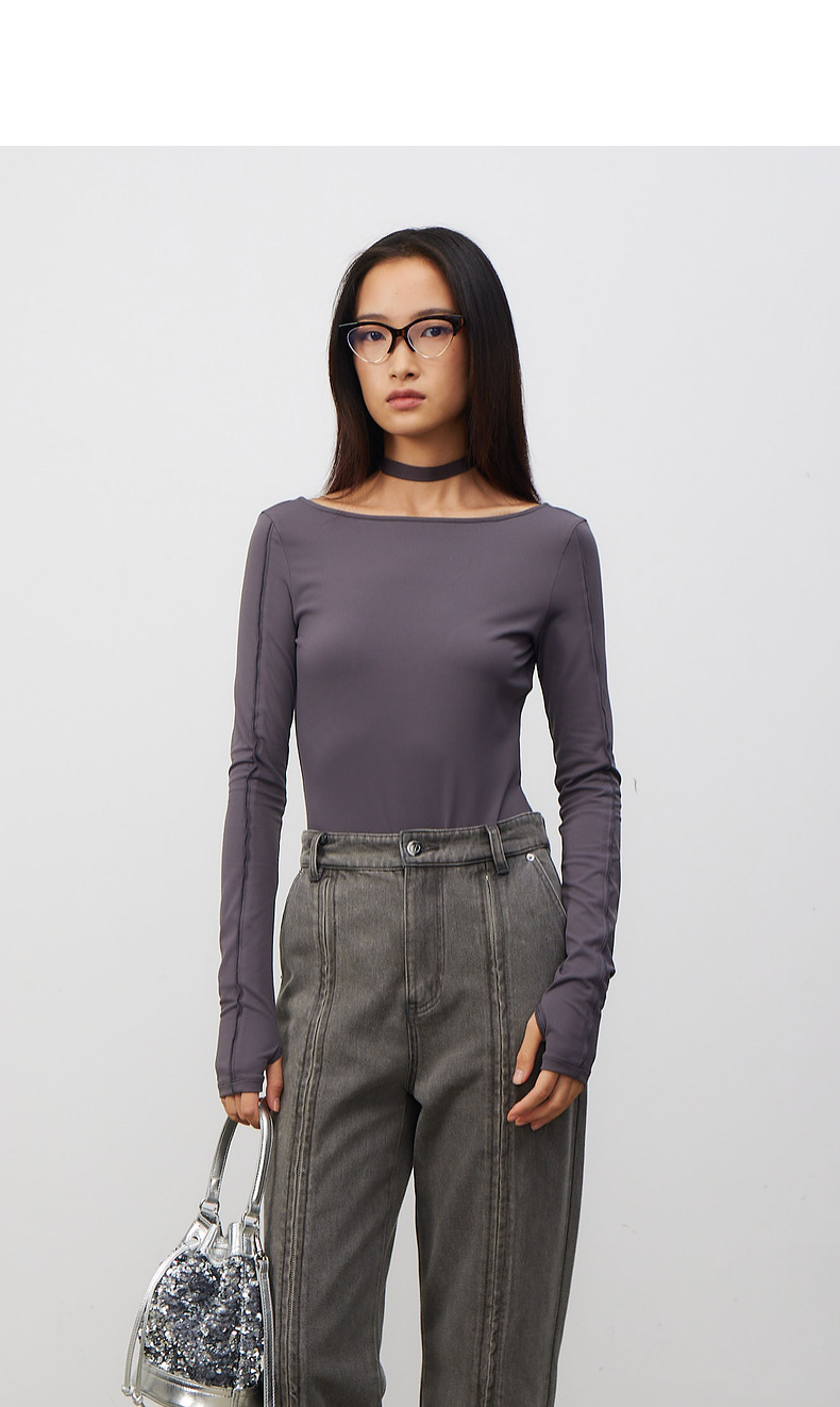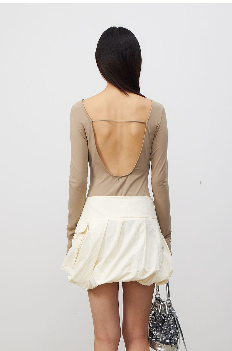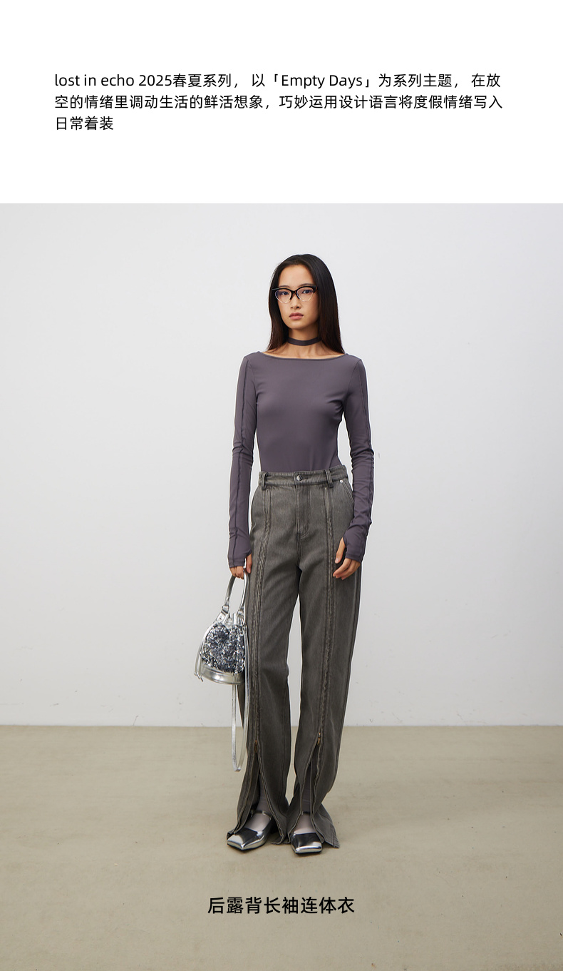 lost in echo2025春夏新款时尚后露背长袖紧身针织连体衣内搭上衣