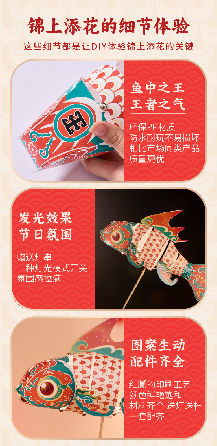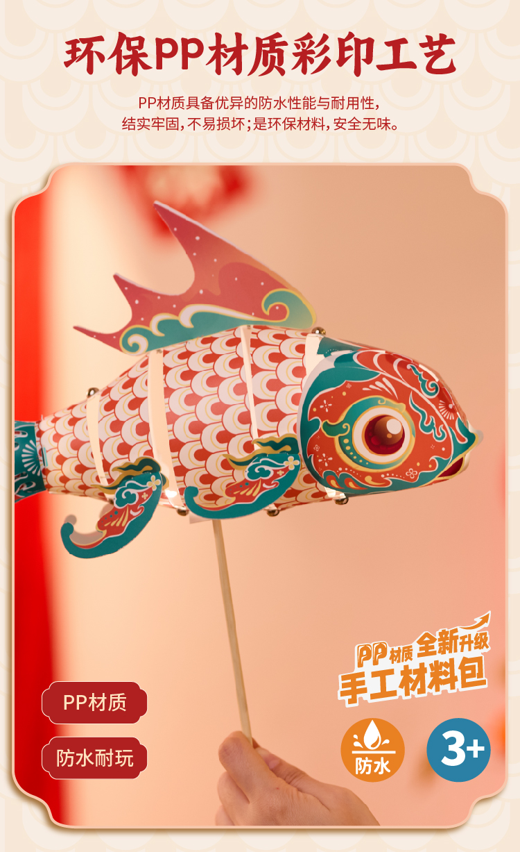 端午节汪满田鱼灯手工diy儿童制作材料包幼儿园非遗花灯灯笼玩具