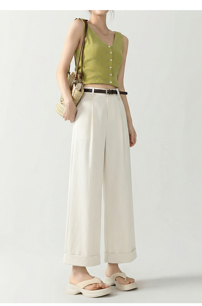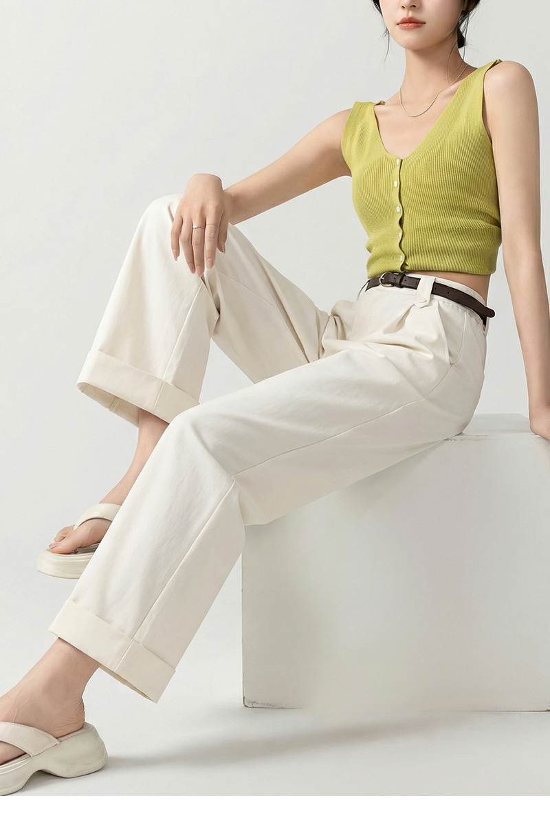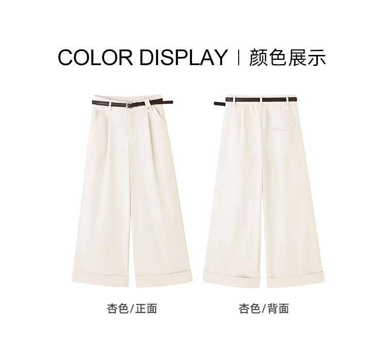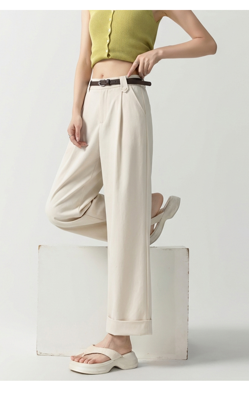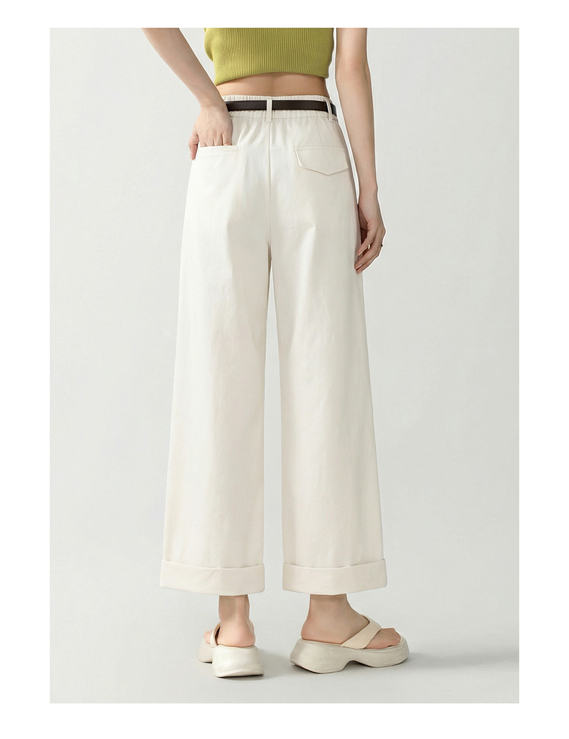 女装配腰带卷边脚口直筒九分休闲裤-205K5231016