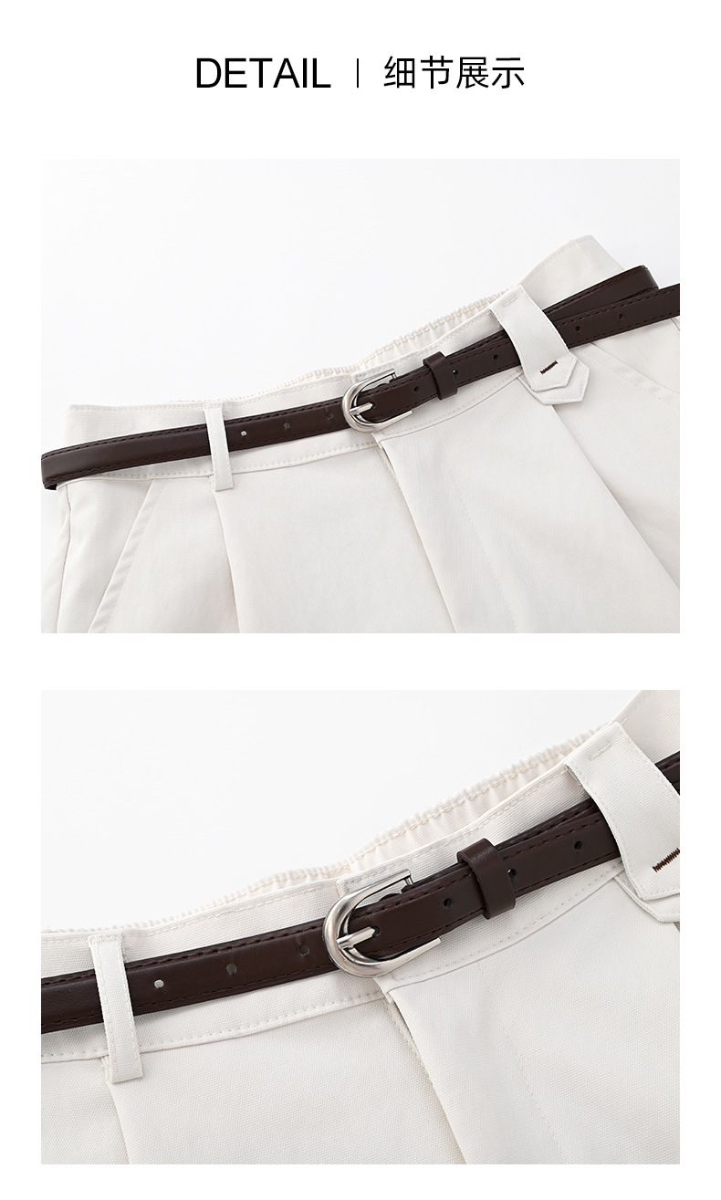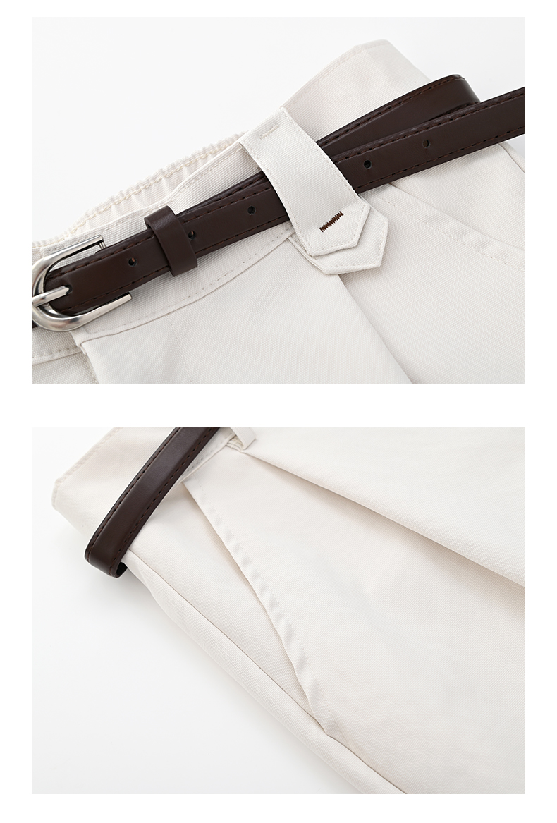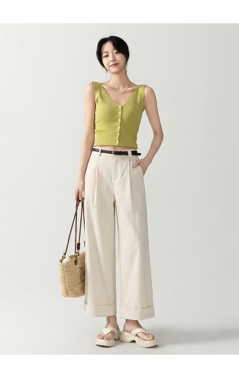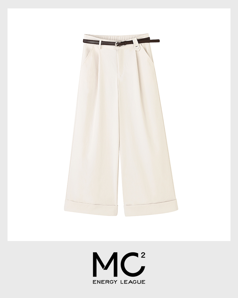 女装配腰带卷边脚口直筒九分休闲裤-205K5231016