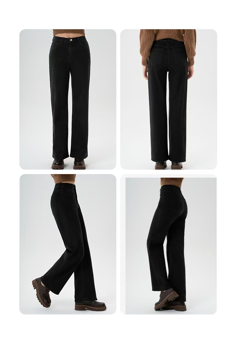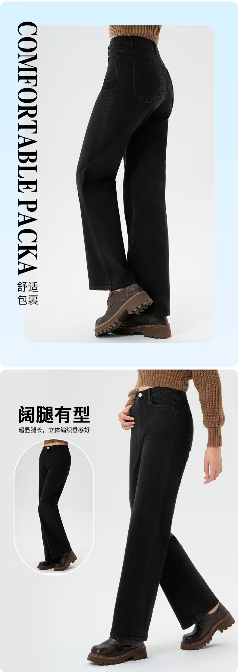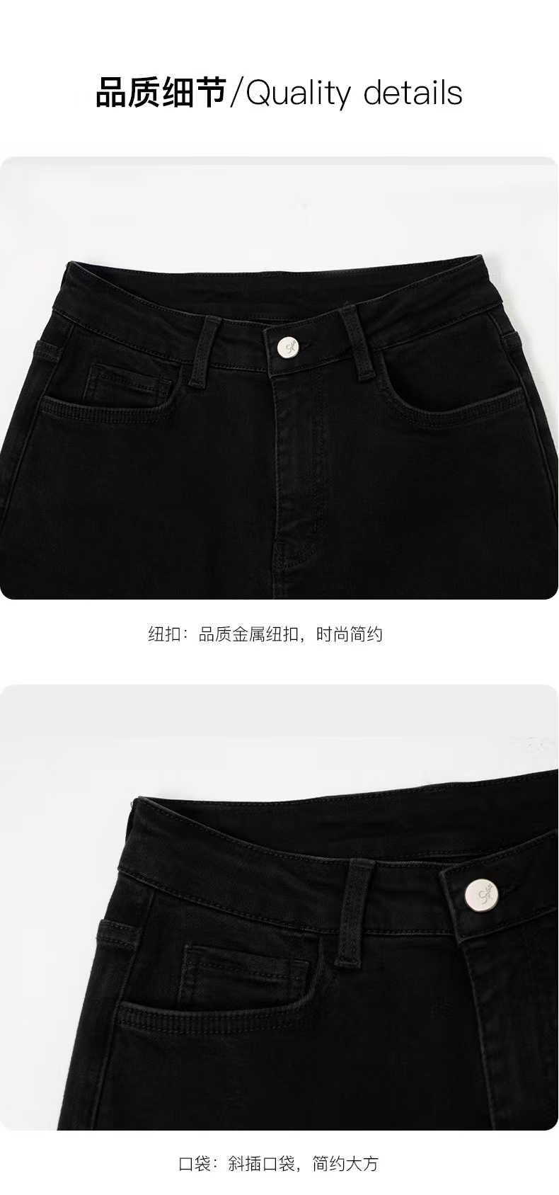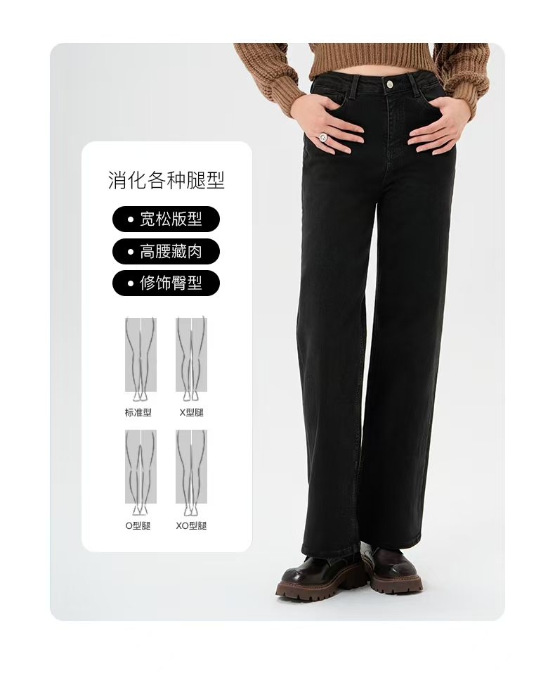 SP-68一粒扣加绒黑色阔腿裤牛仔裤K-NZ453