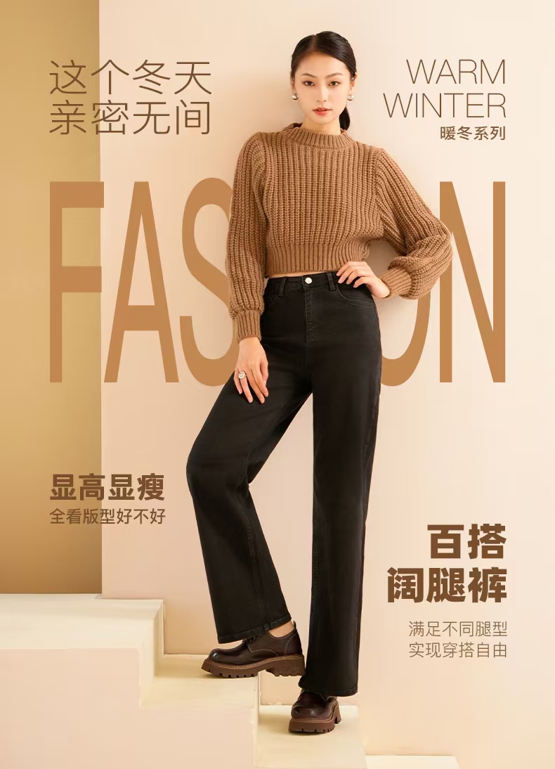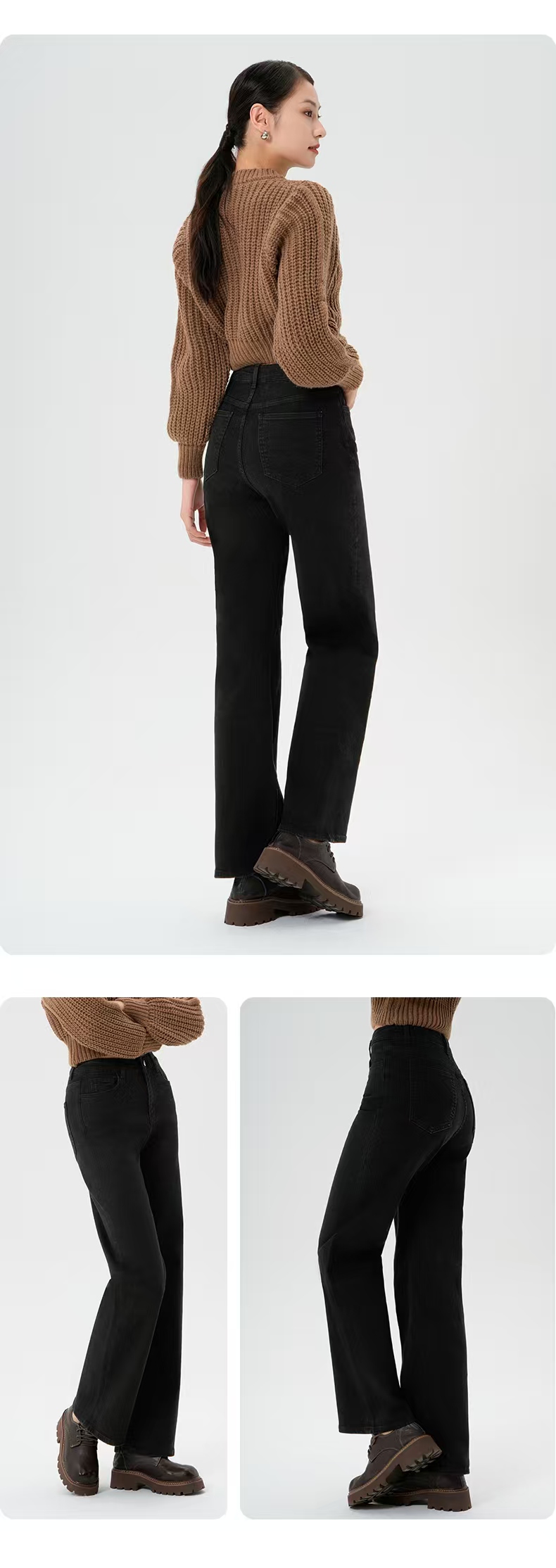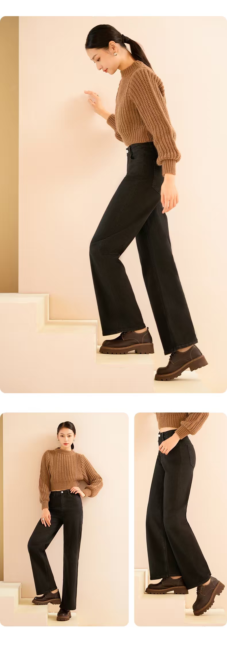 SP-68一粒扣加绒黑色阔腿裤牛仔裤K-NZ453