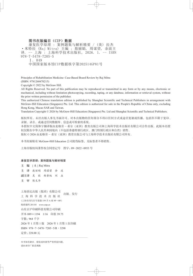 康复医学原理:案例题集与解析精要 敖丽娟 周谋望 余波 主译 适用物理医学与康复专业所有级别的从业人员 上海科学技术出版社