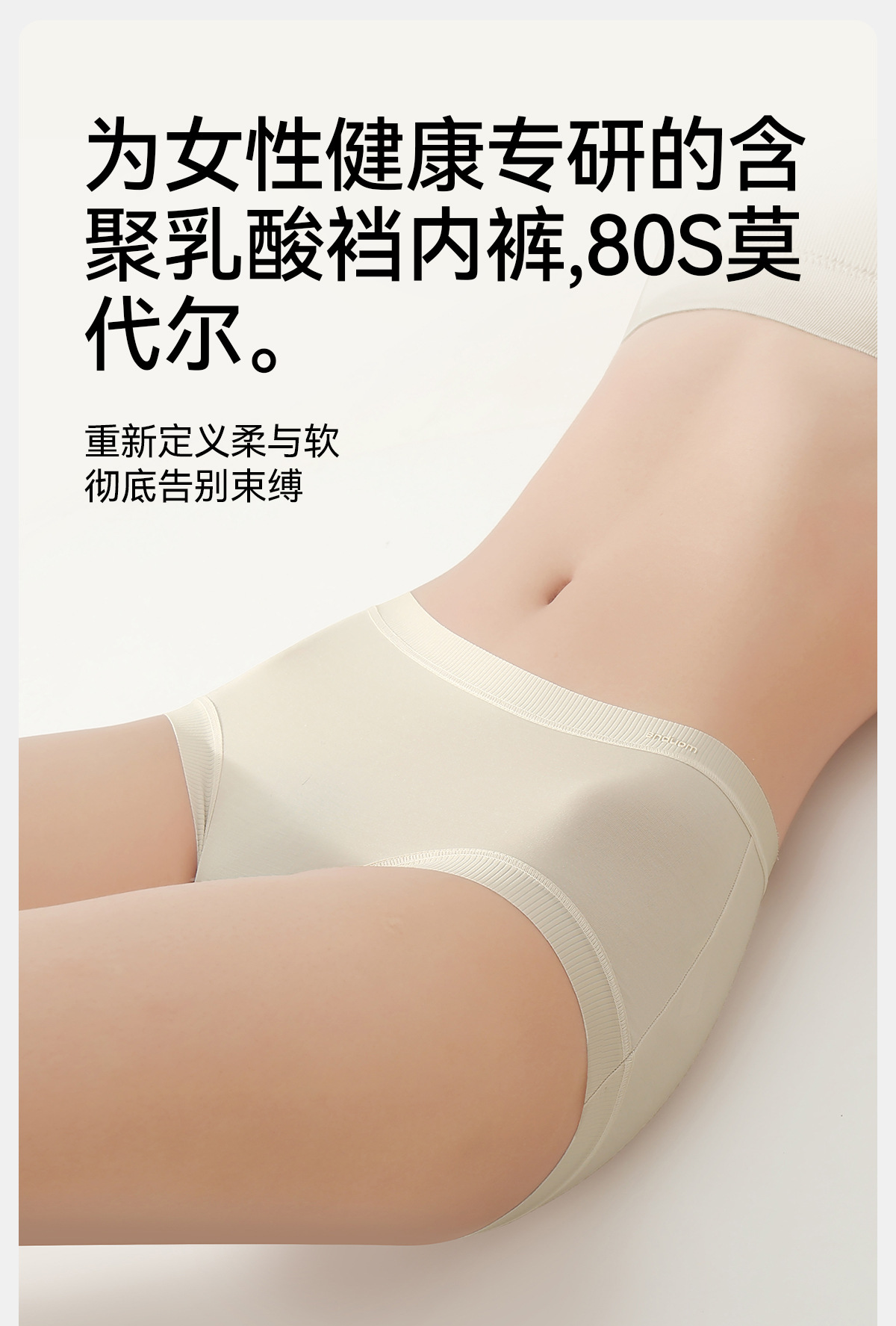 【59元4条装】80支莫代尔女士内裤 聚乳酸抑菌底裆中腰不夹臀无痕内裤