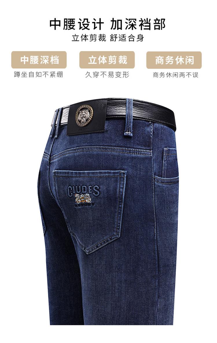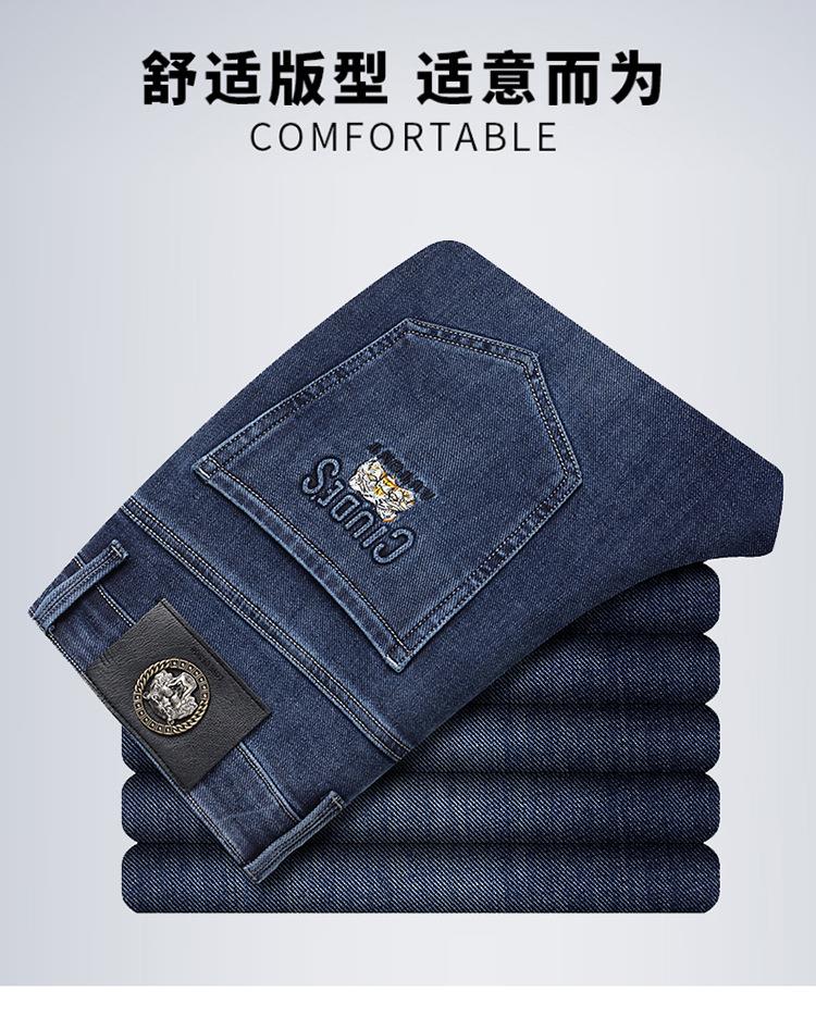 牛仔裤男士秋冬季新款加厚虎头刺绣潮流简约百搭弹力直筒休闲长裤