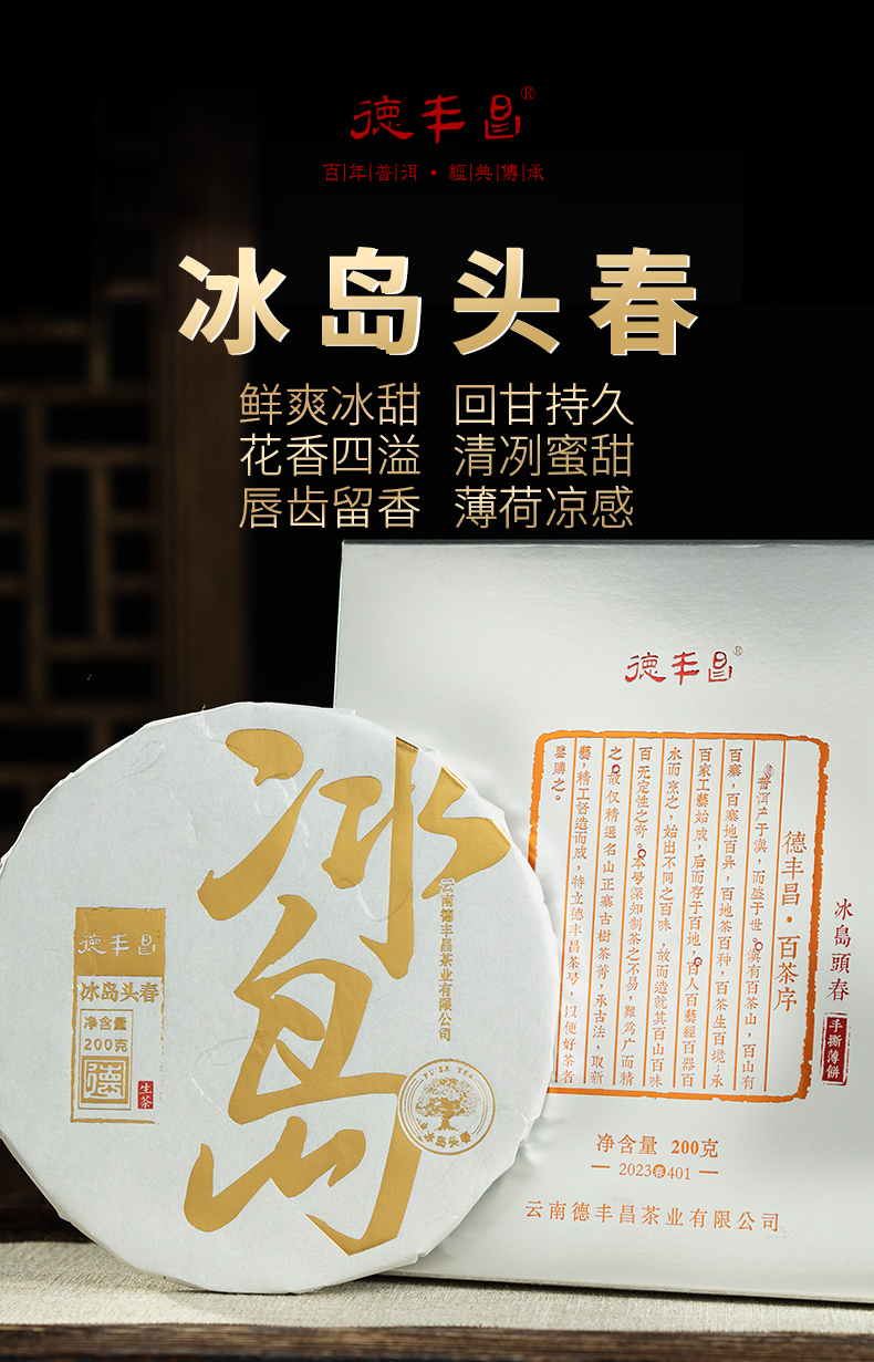 2023年春茶德丰昌【冰岛】普洱生茶手撕薄饼200克/盒