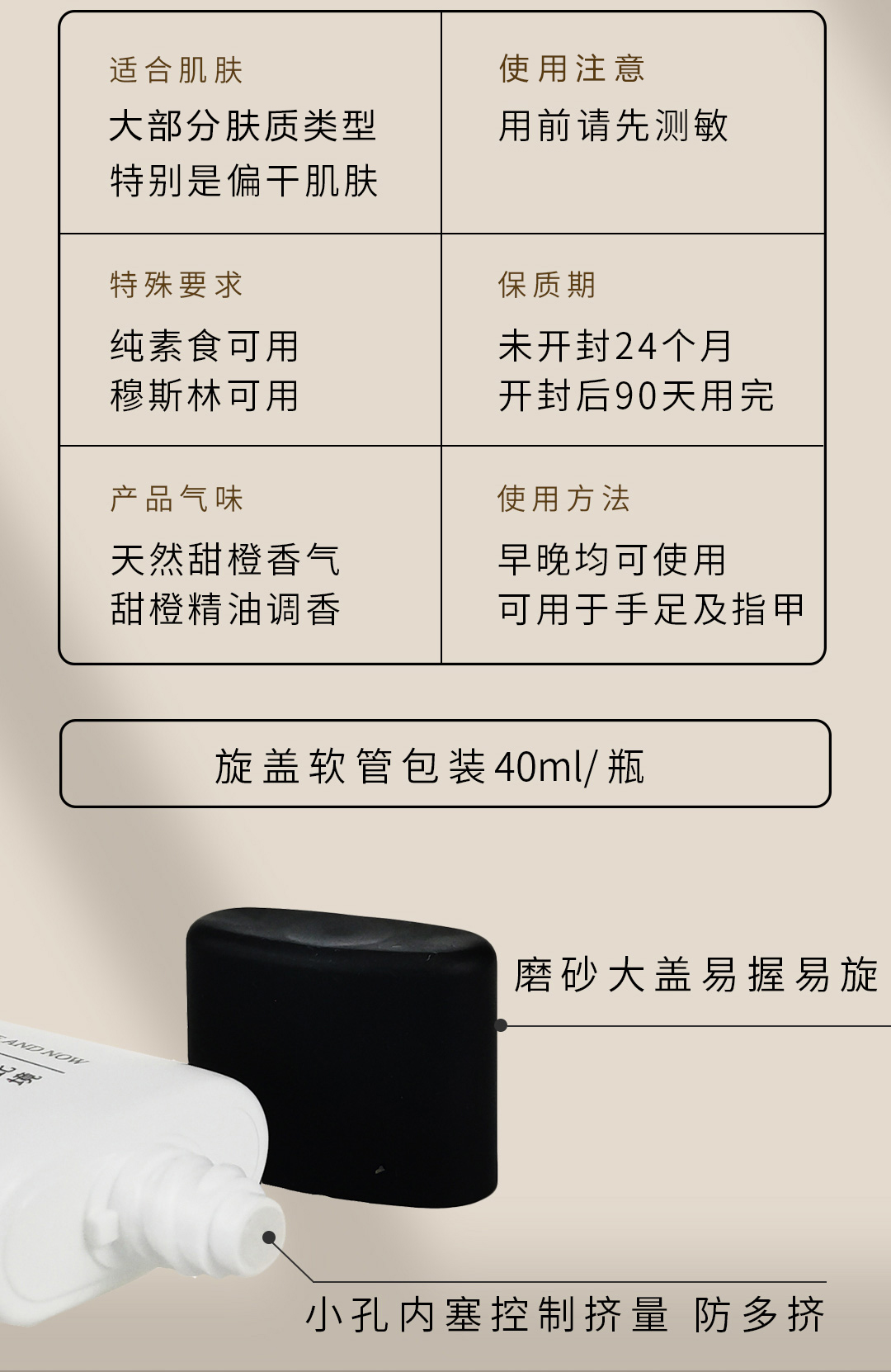 功效:保湿滋润,改善手脚肌肤干燥粗糙开裂,改善指(趾)甲倒刺等