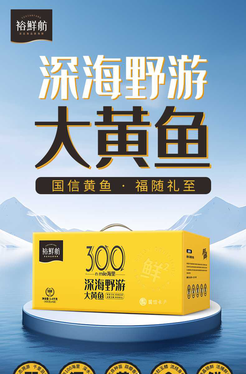 裕鲜舫 300海里大黄鱼礼盒 大黄鱼原条400g*4条礼盒 1.6kg