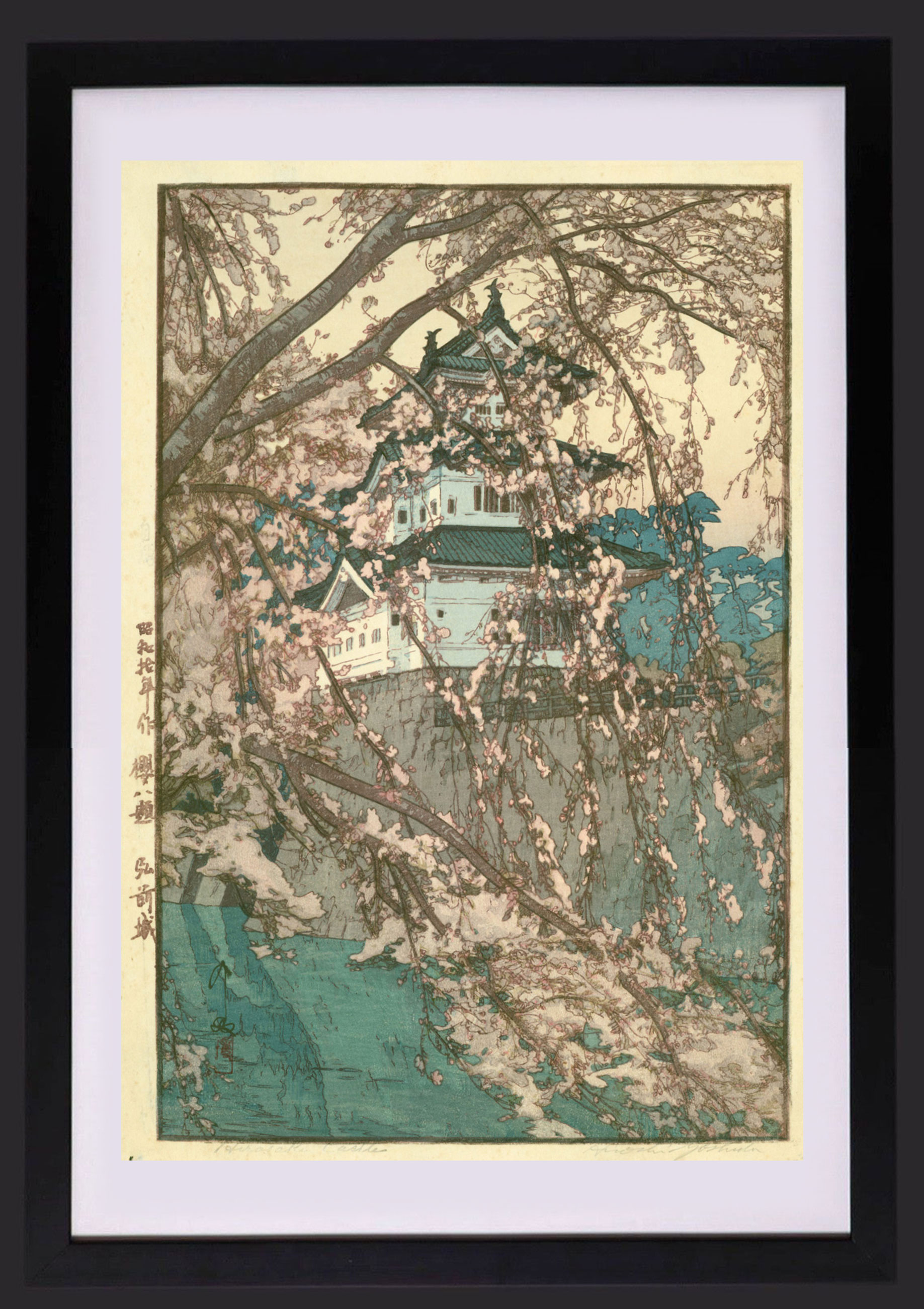 1935年日本昭和时代著名画家吉田博签名创作新版画作品《櫻八題 弘前城》