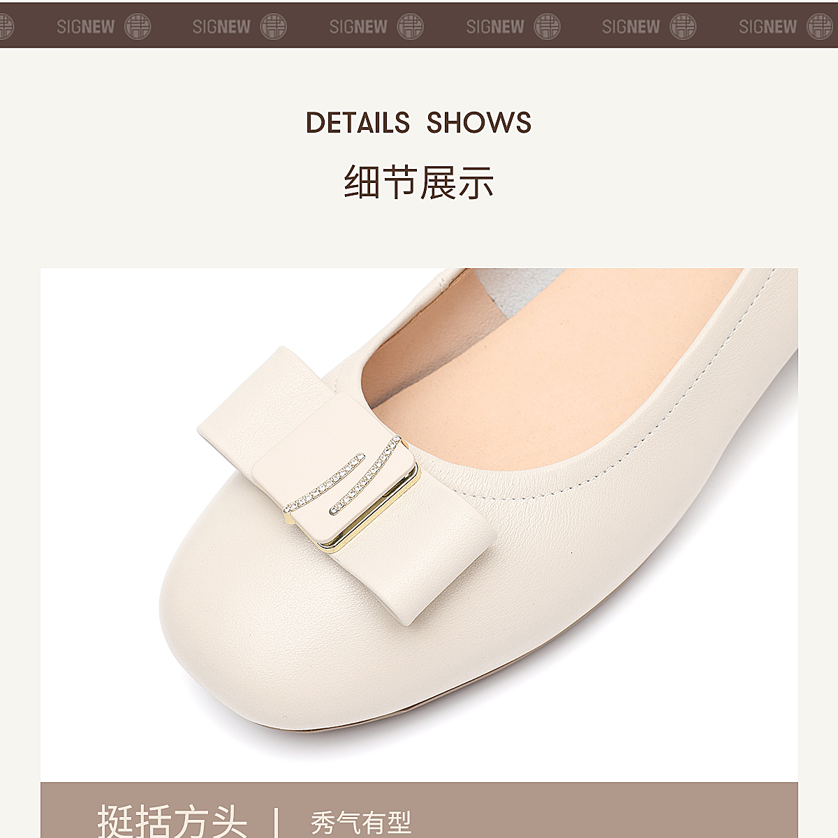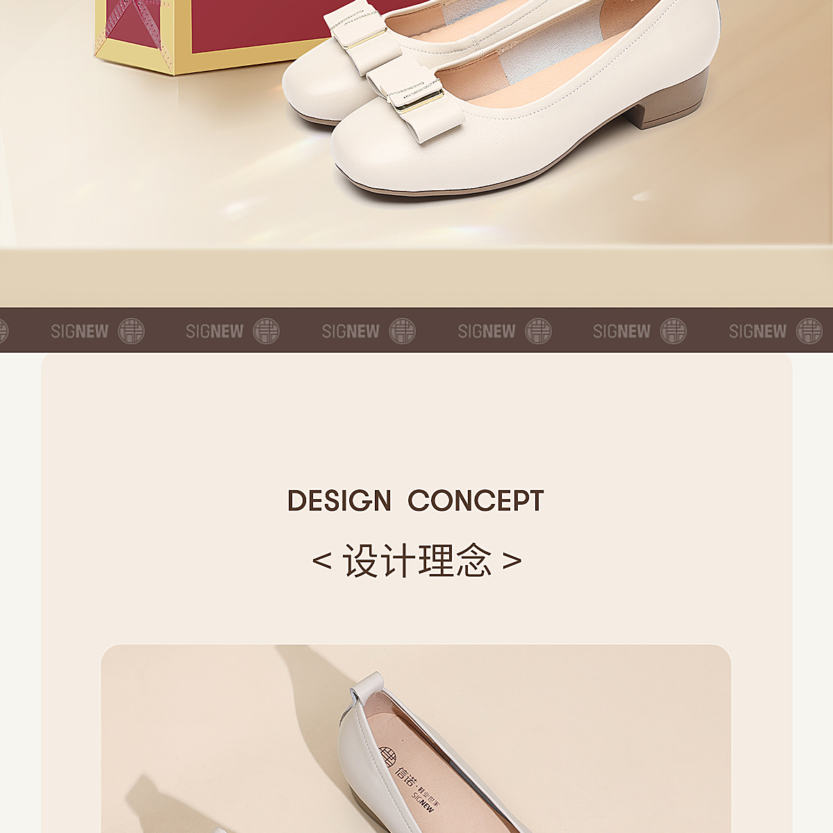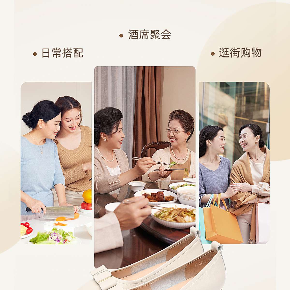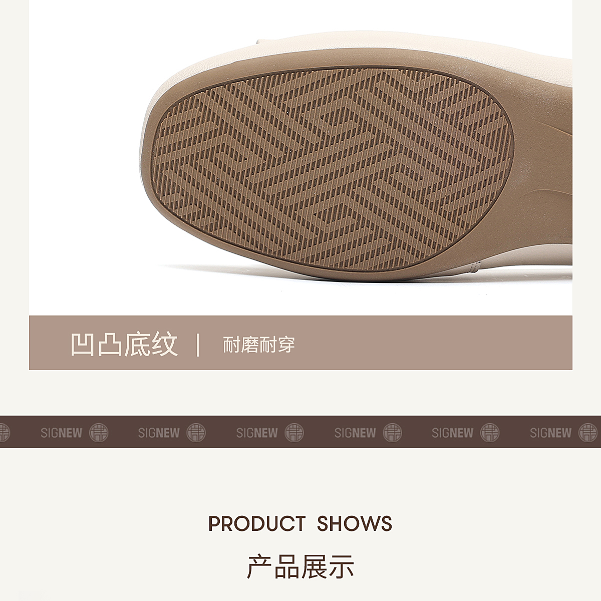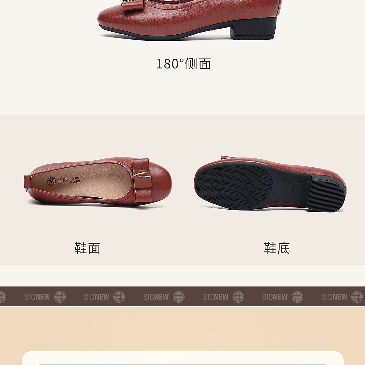 通勤风真皮蝴蝶结粗跟单鞋女一脚蹬软底妈妈鞋黑色浅口鞋6C1607-17
