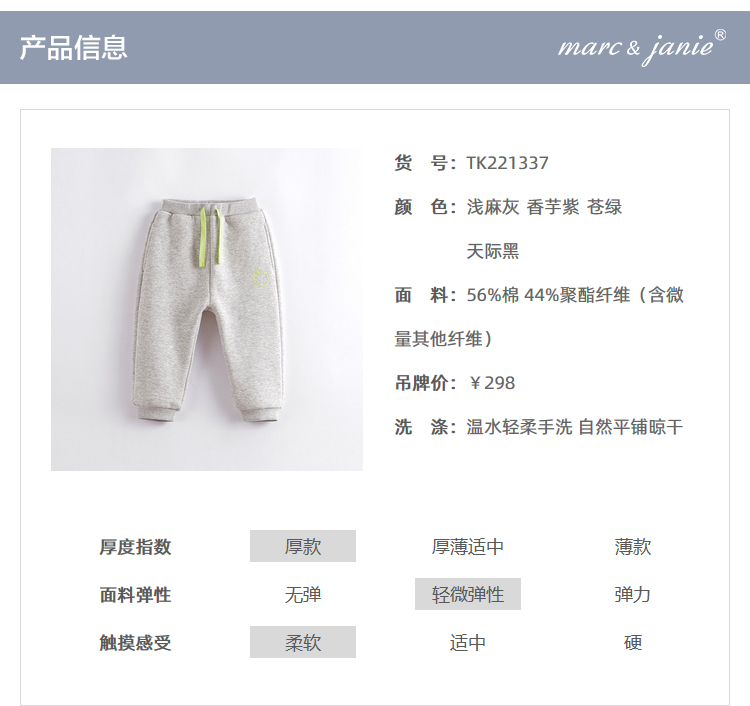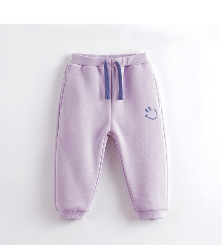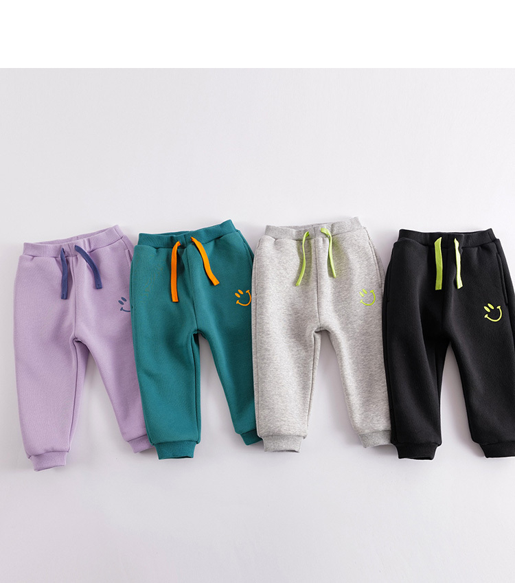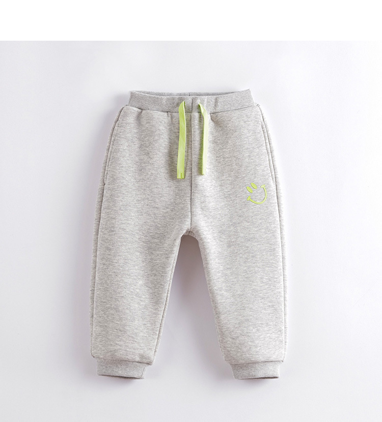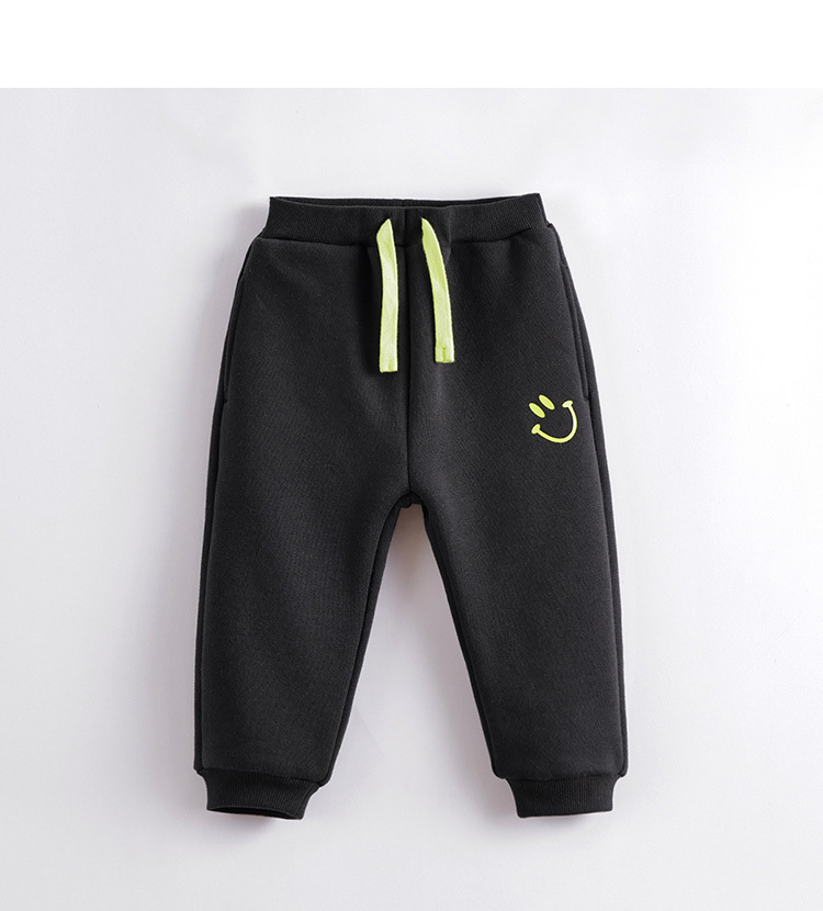 马克珍妮秋冬新款 男女童笑脸印花加绒运动裤 儿童裤子221337