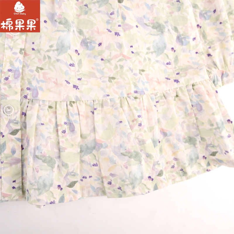 棉果果专柜同款春季新品女童梭织印花翻领连衣裙M122700224028