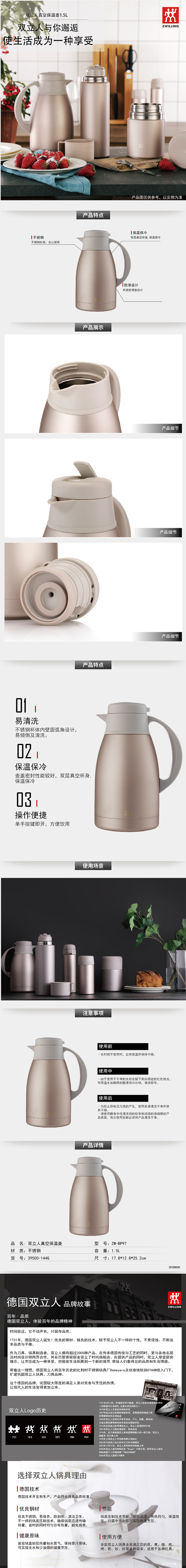 ZW-BP97双立人真空保温壶1.5升 亚光金