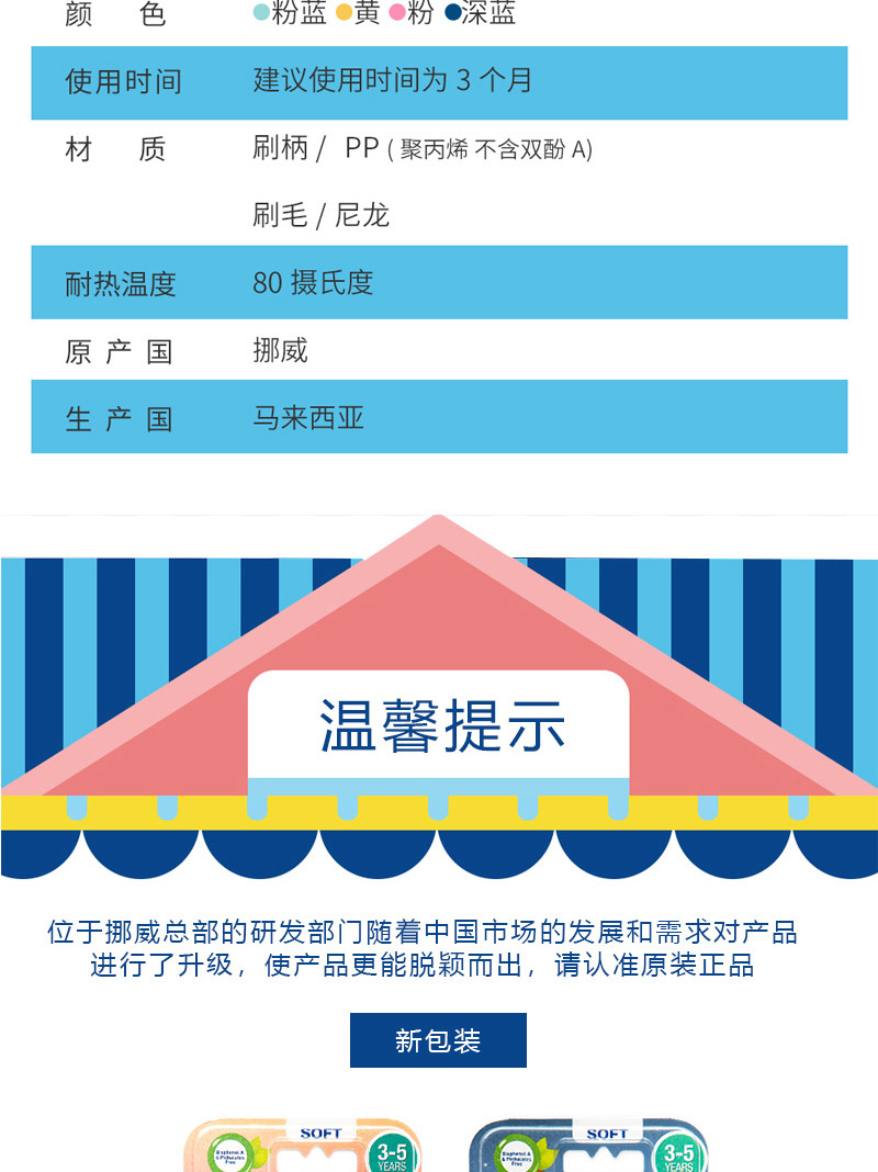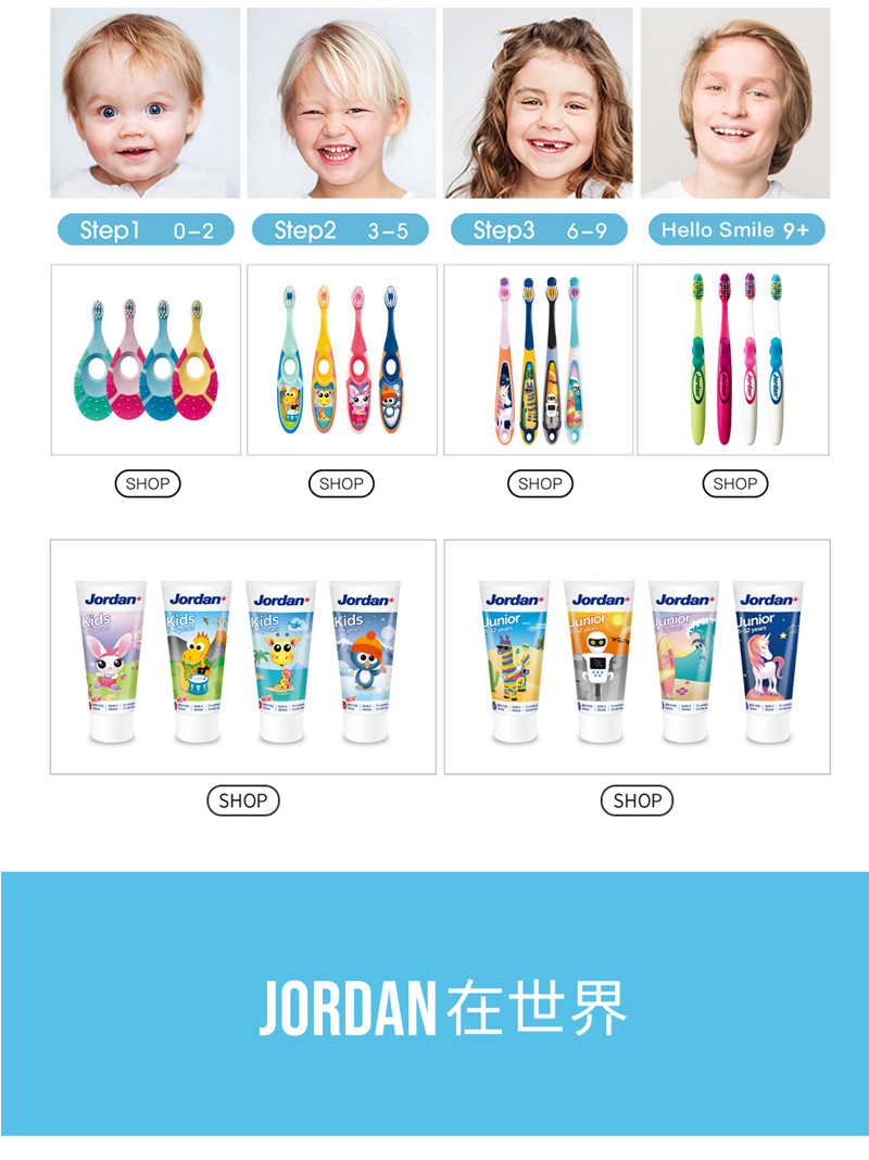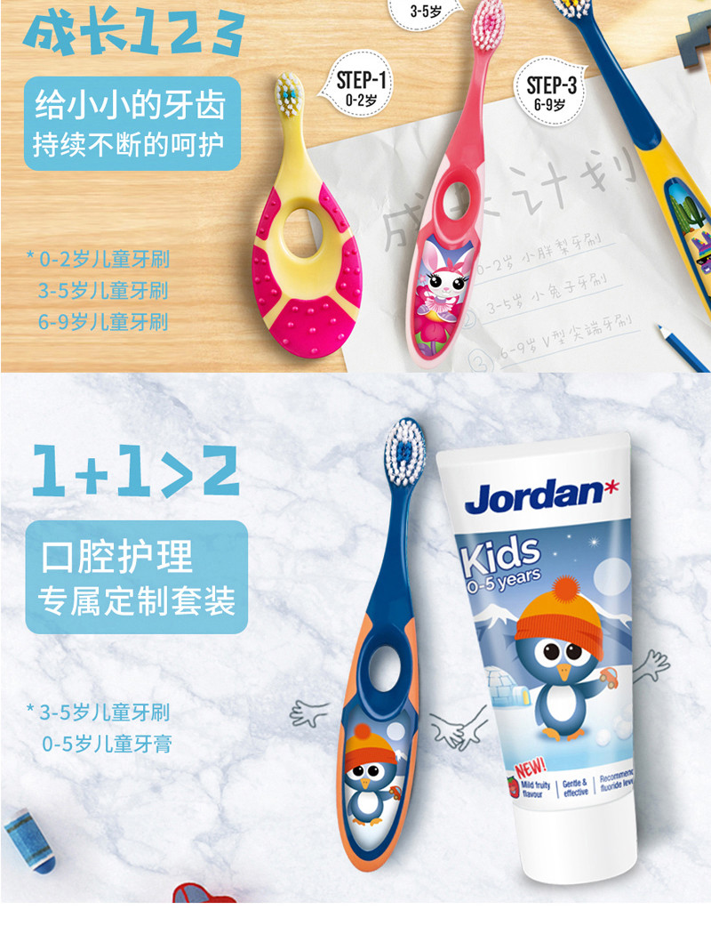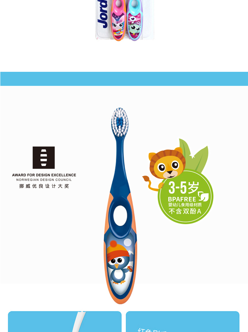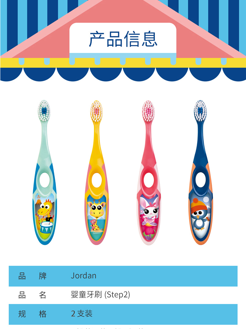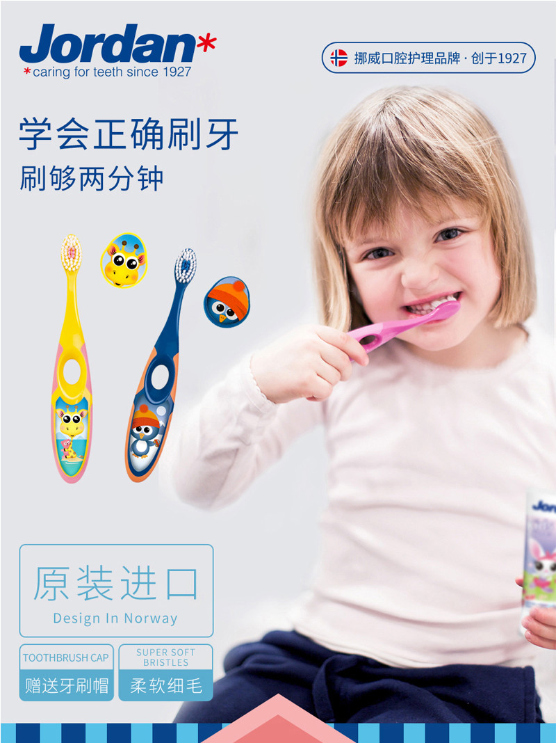 挪威 jordan 婴童牙刷 Step3(6-9岁)两支装 颜色随机