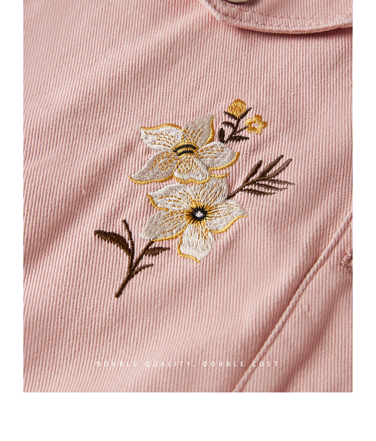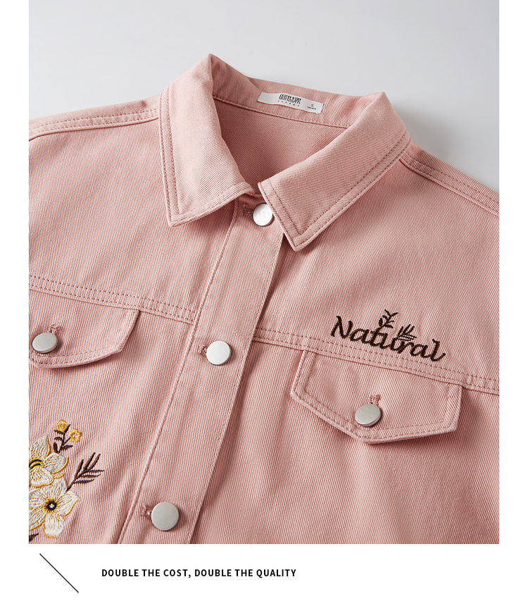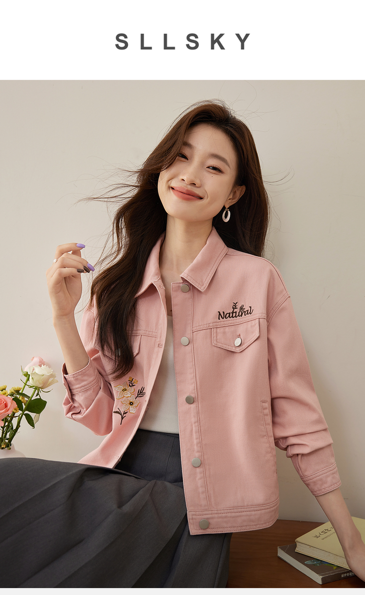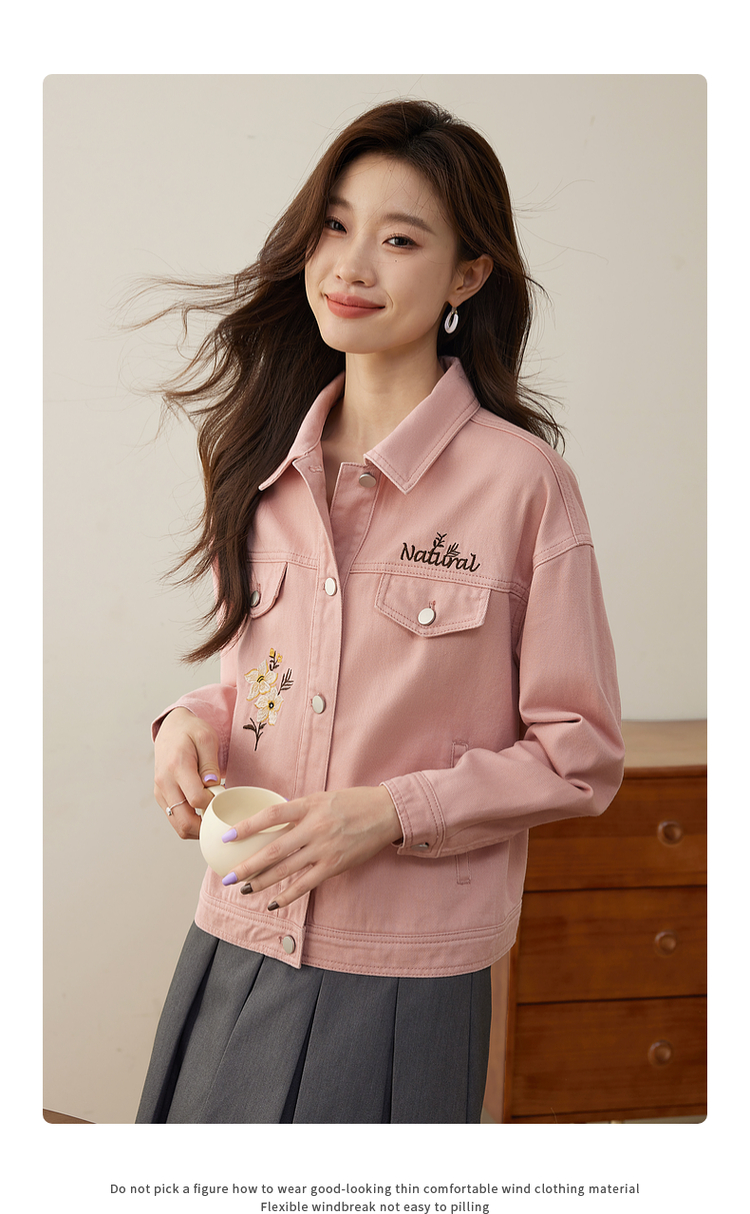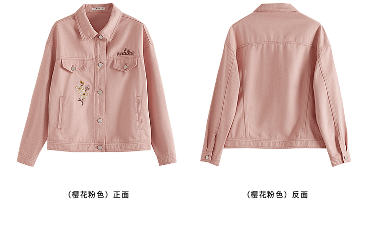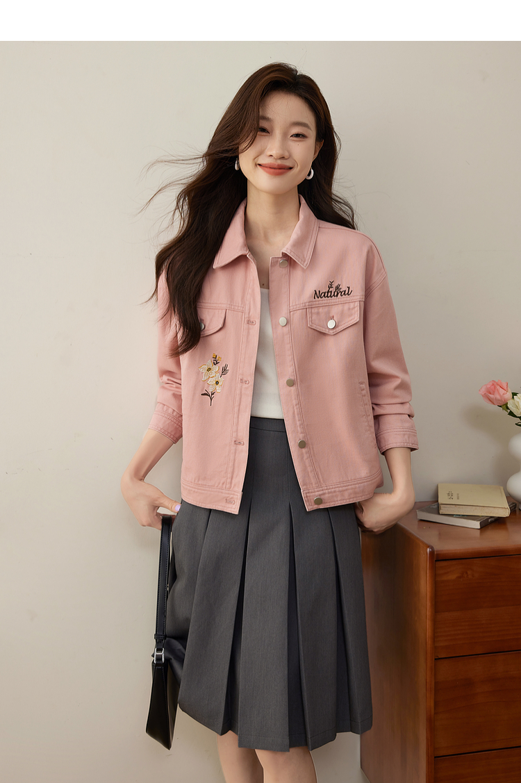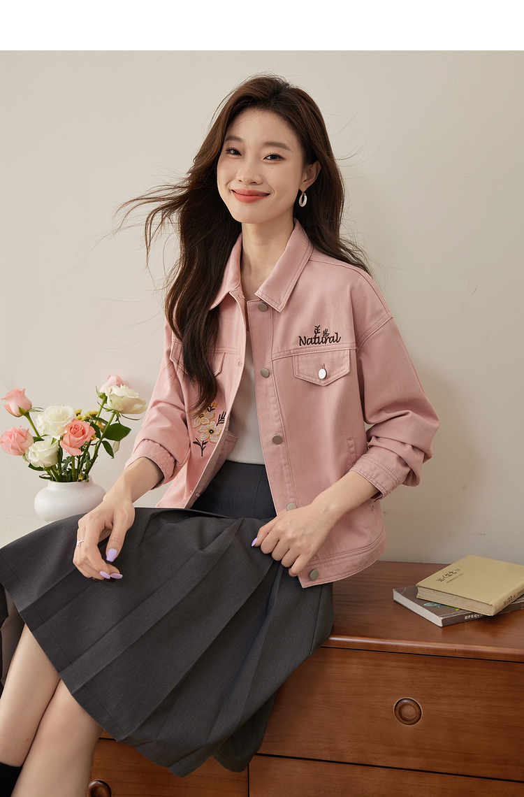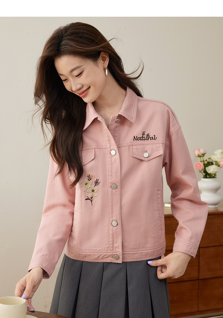 【专属特价】熙世界文艺复古字母绣花牛仔外套短款粉色夹克上衣2025秋装新款