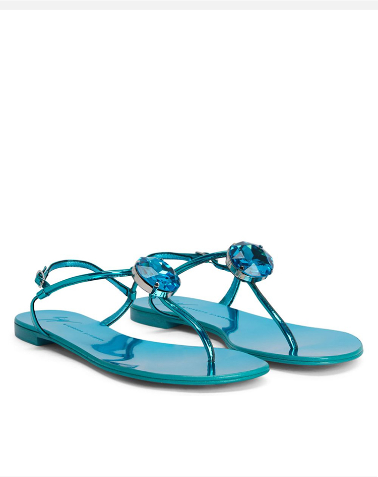 Giuseppe Zanotti 女士签名徽标中跟夹趾凉鞋 蓝色 E400004002