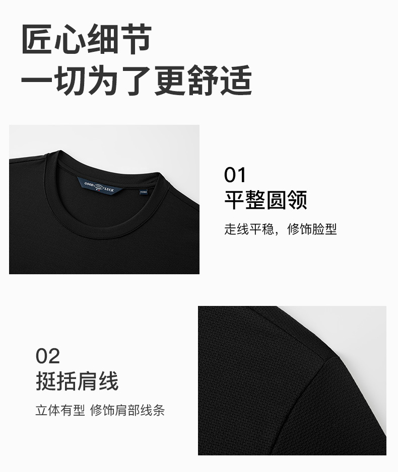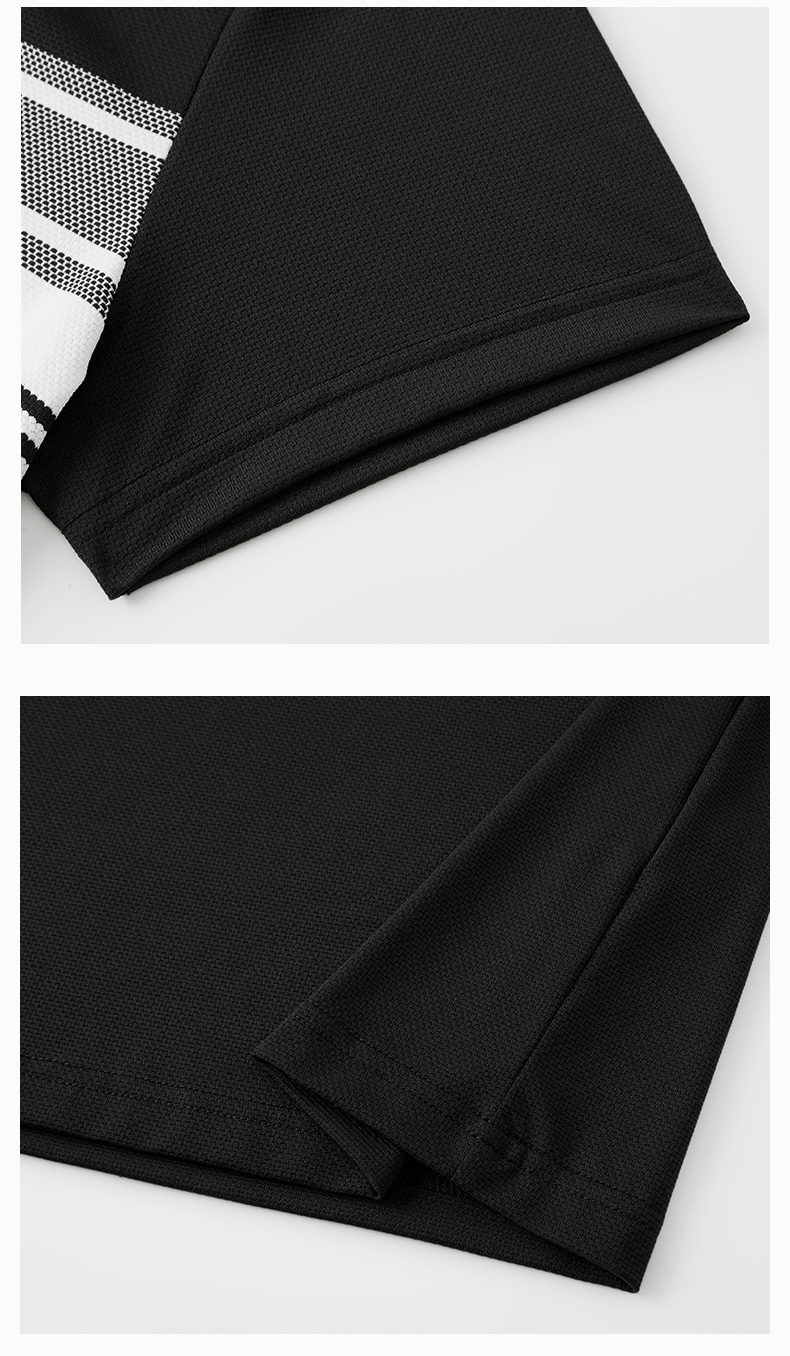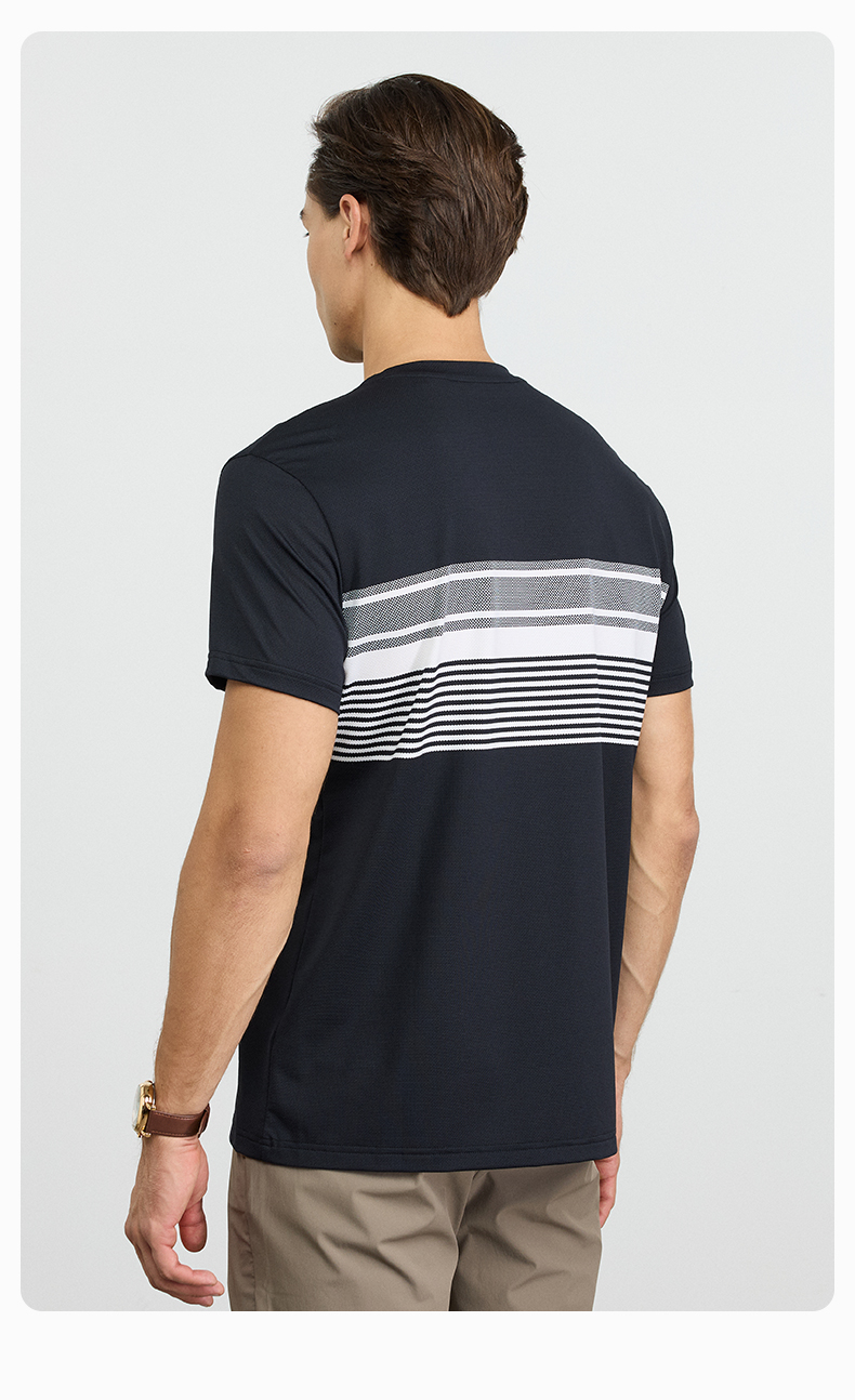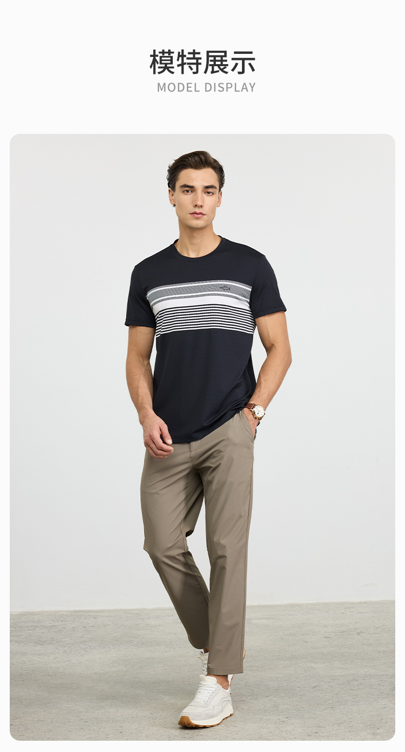 【高弹舒适】德鲨黑色短袖圆领T恤男2026夏季新款条纹撞色打底衫