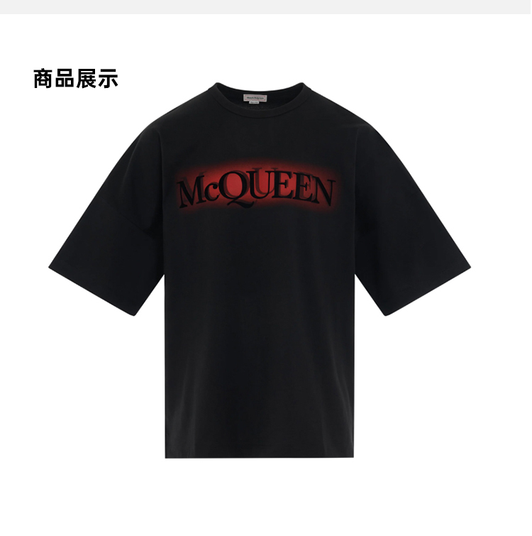 ALEXANDER MCQUEEN 亚历山大.麦昆 男士字母徽标印花圆领短袖T恤 黑色 750659 QVZ10 0901