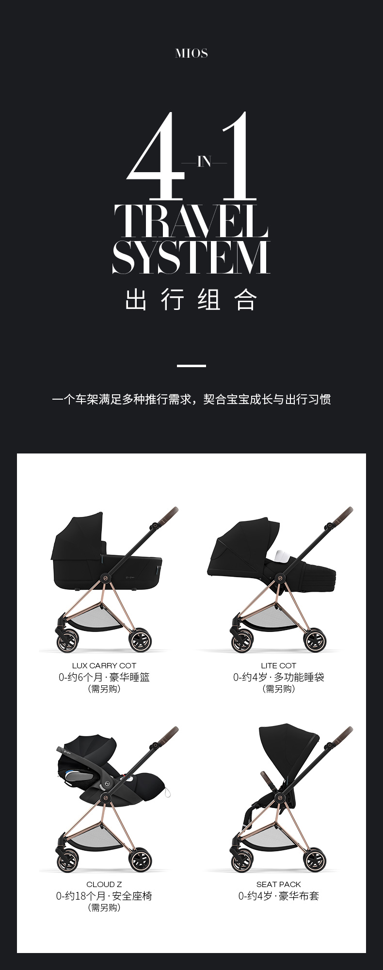 Cybex婴儿车 铂金线 缪斯Mios3代双向可平躺高景观婴儿推车