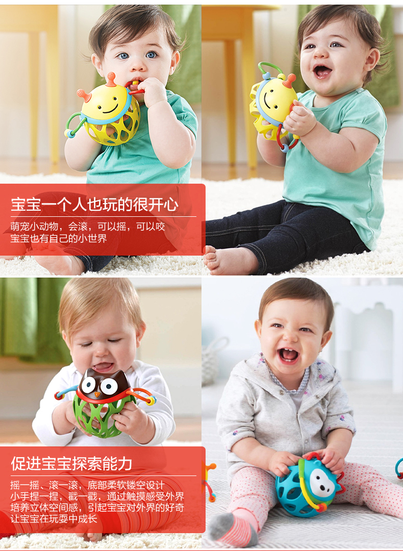 【QHXJ】美国Skiphop 婴儿练习磨牙可咬胶玩具摇摇球-【玩具】