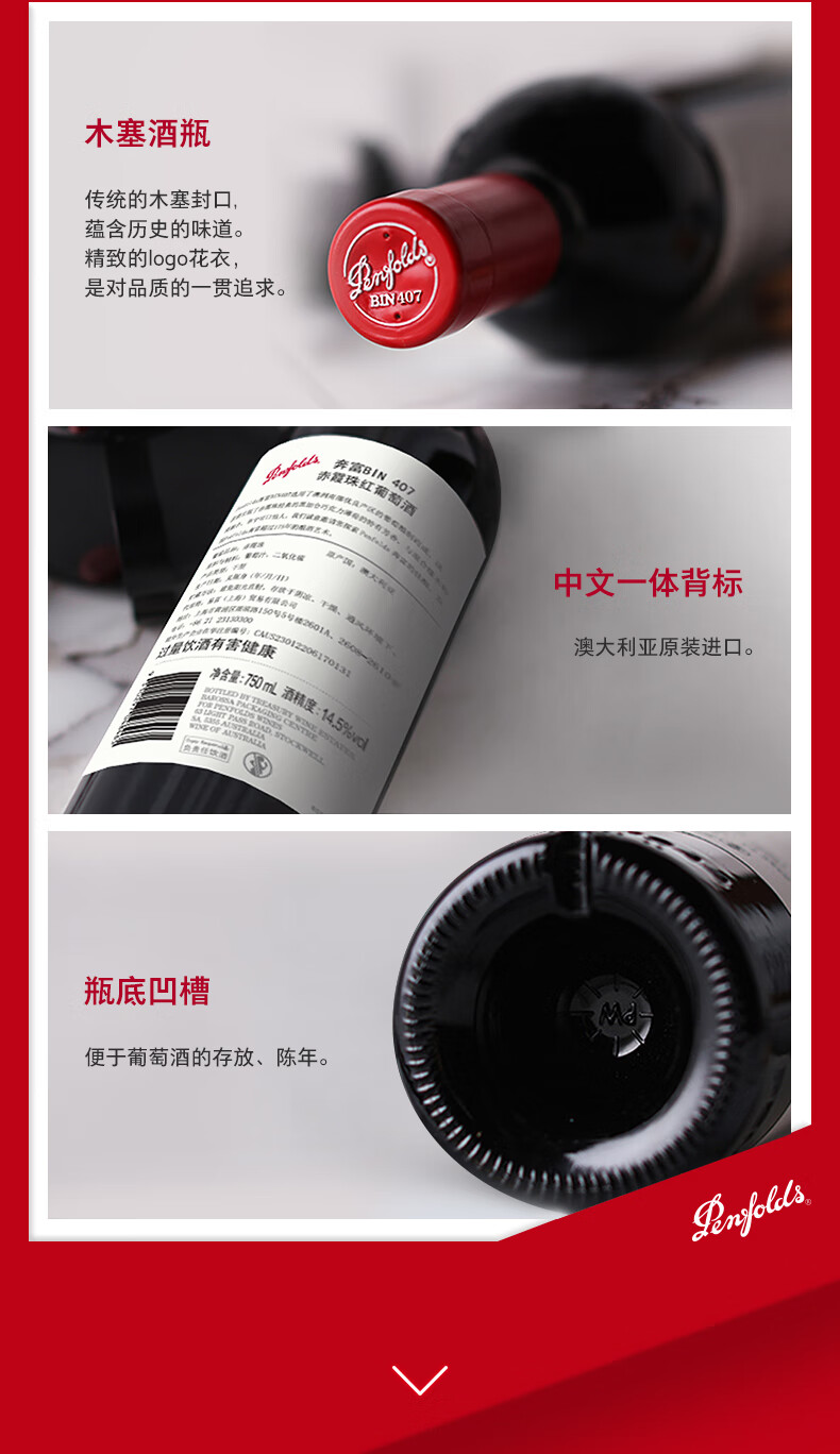 【国行正品】奔富Penfolds Bin407 赤霞珠干红葡萄酒 750ml 原瓶进口正品 送礼宴请