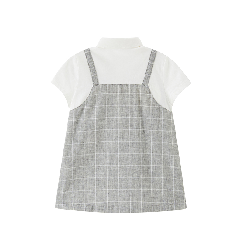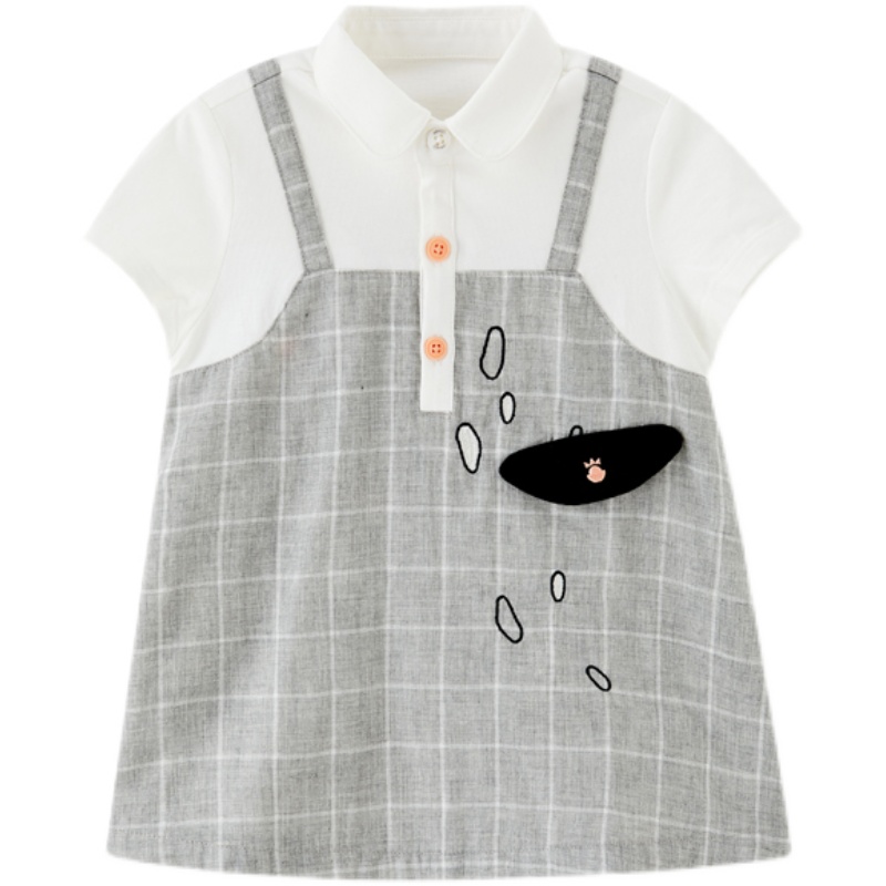 英氏-童衣类(夏)F2英梭短袖连衣裙花灰100CM