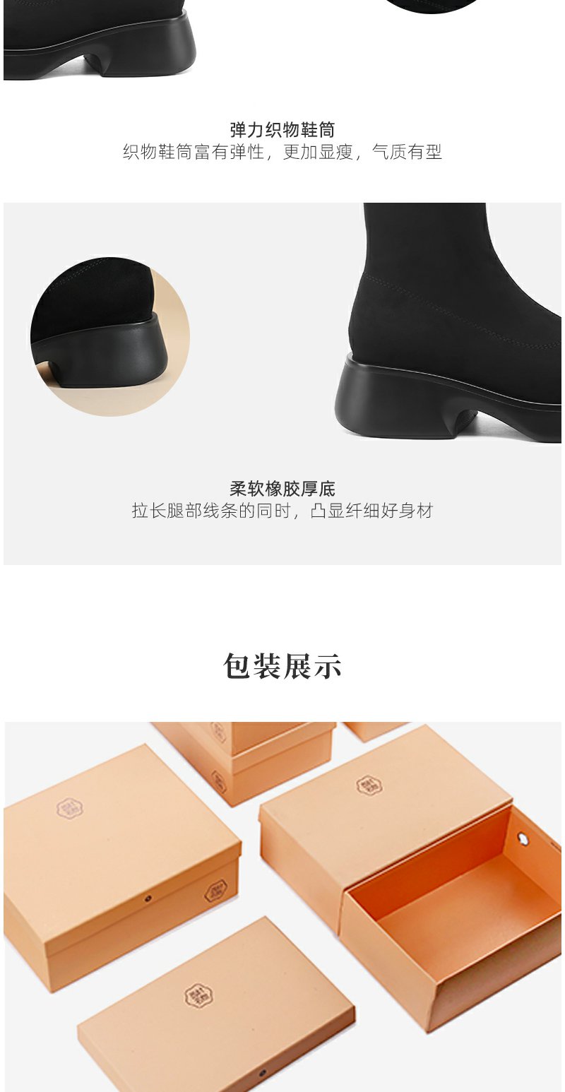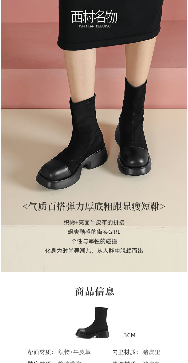 西村名物2022厚底女靴秋冬设计感短筒瘦瘦靴拼接弹力靴袜靴44801
