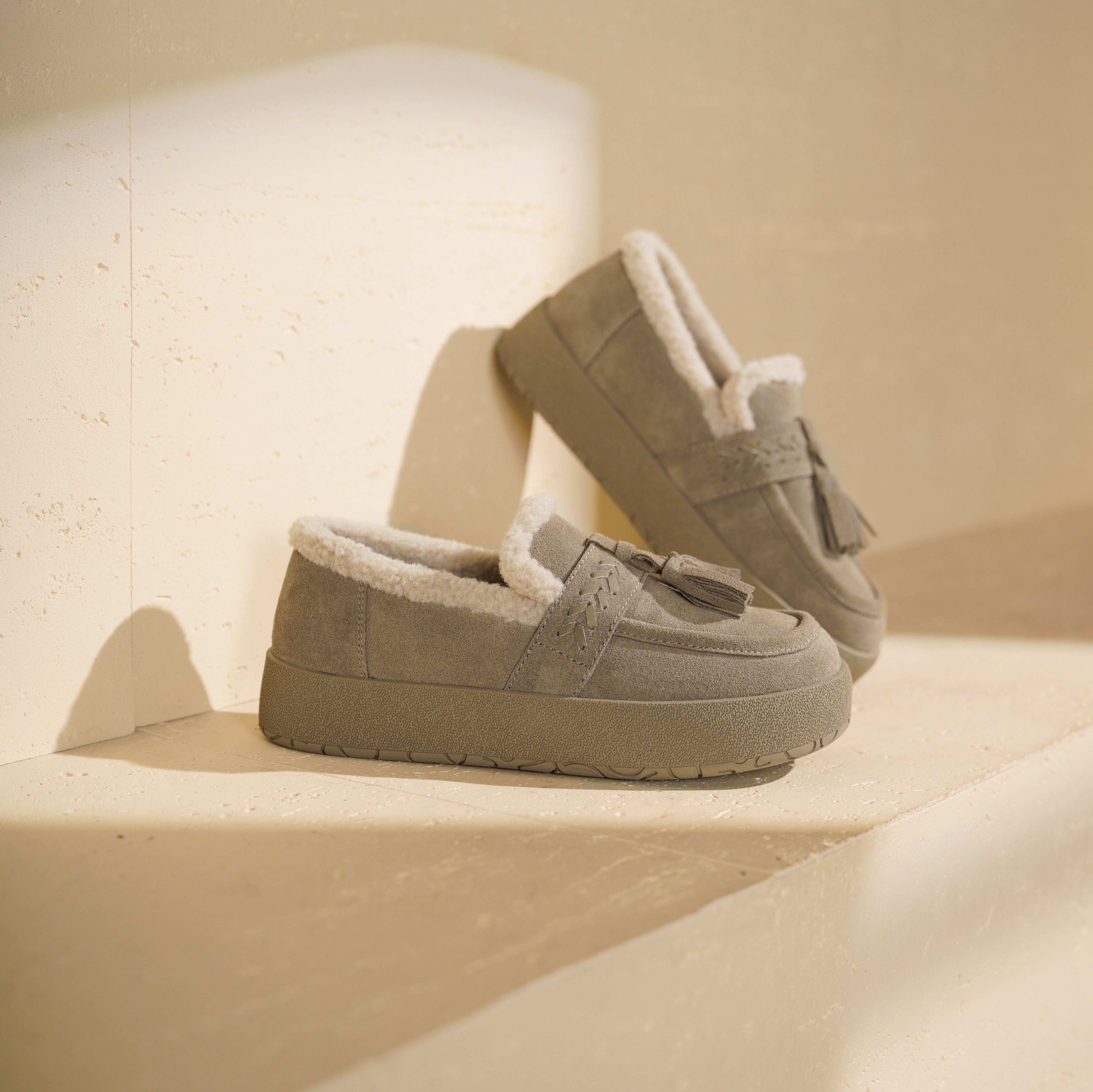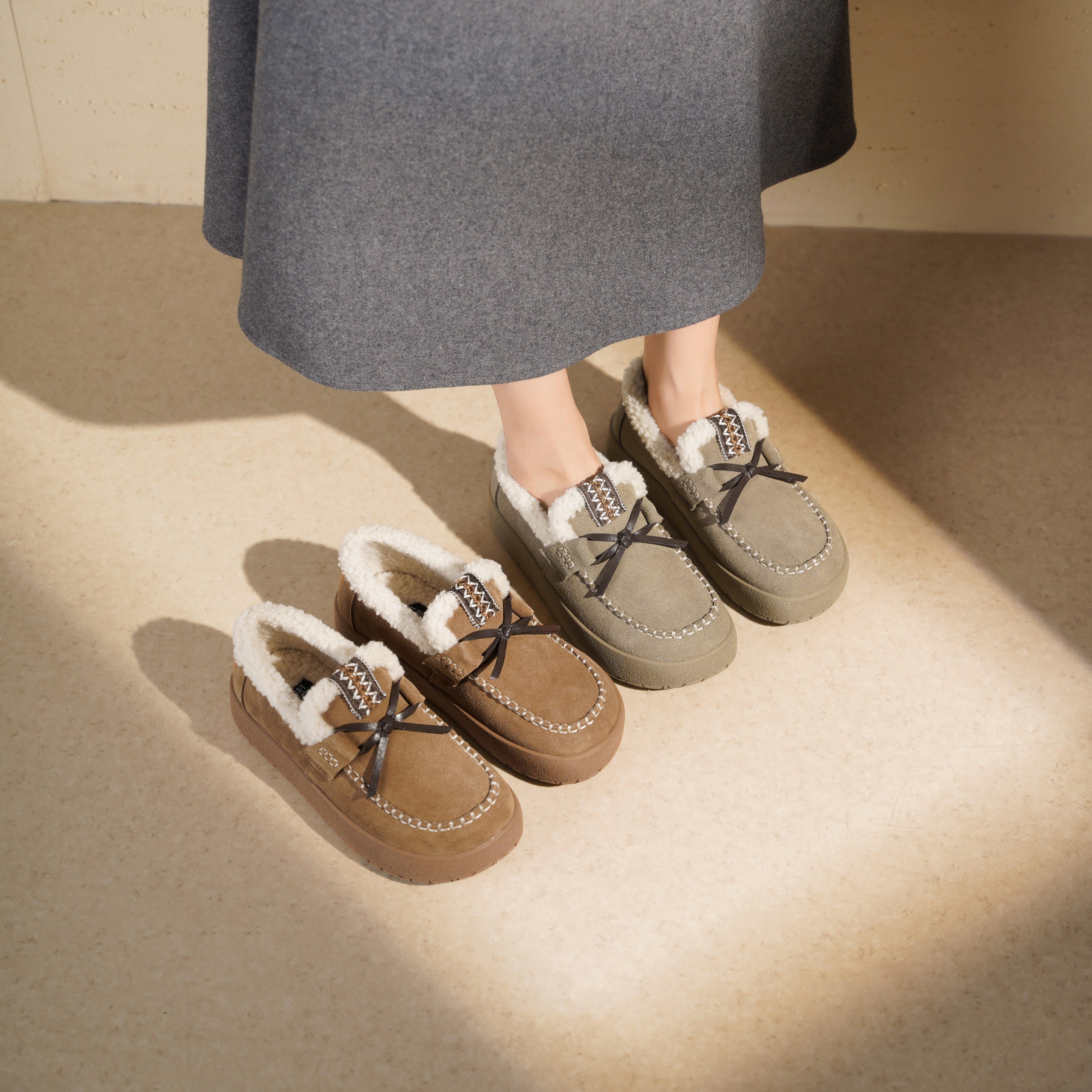 西村名物2025年冬季新款一脚蹬加绒保暖勃肯鞋厚底休闲毛毛鞋豆豆鞋T25DM49151