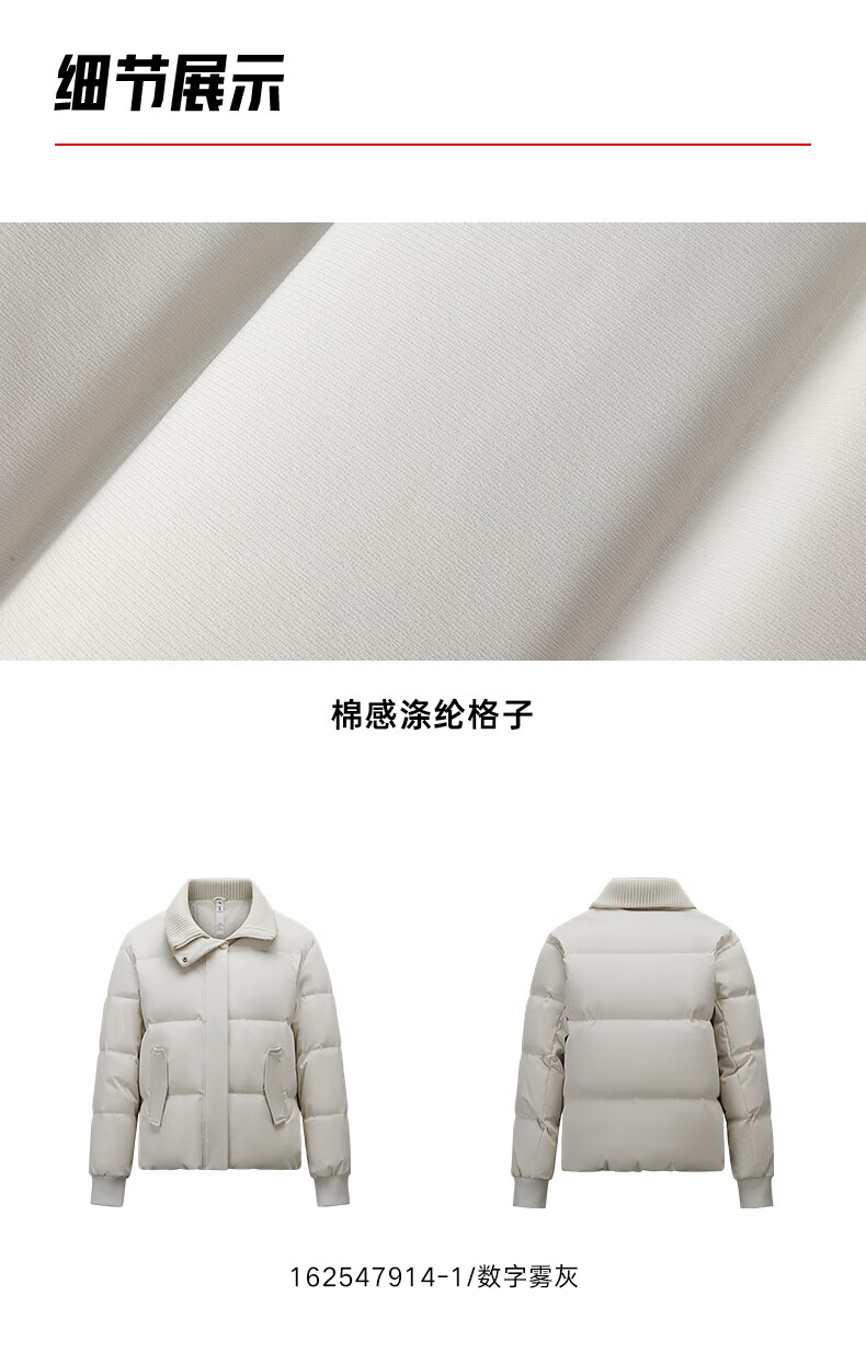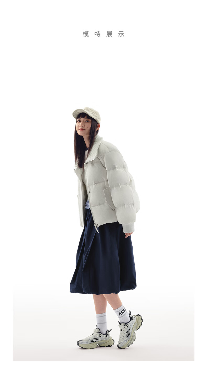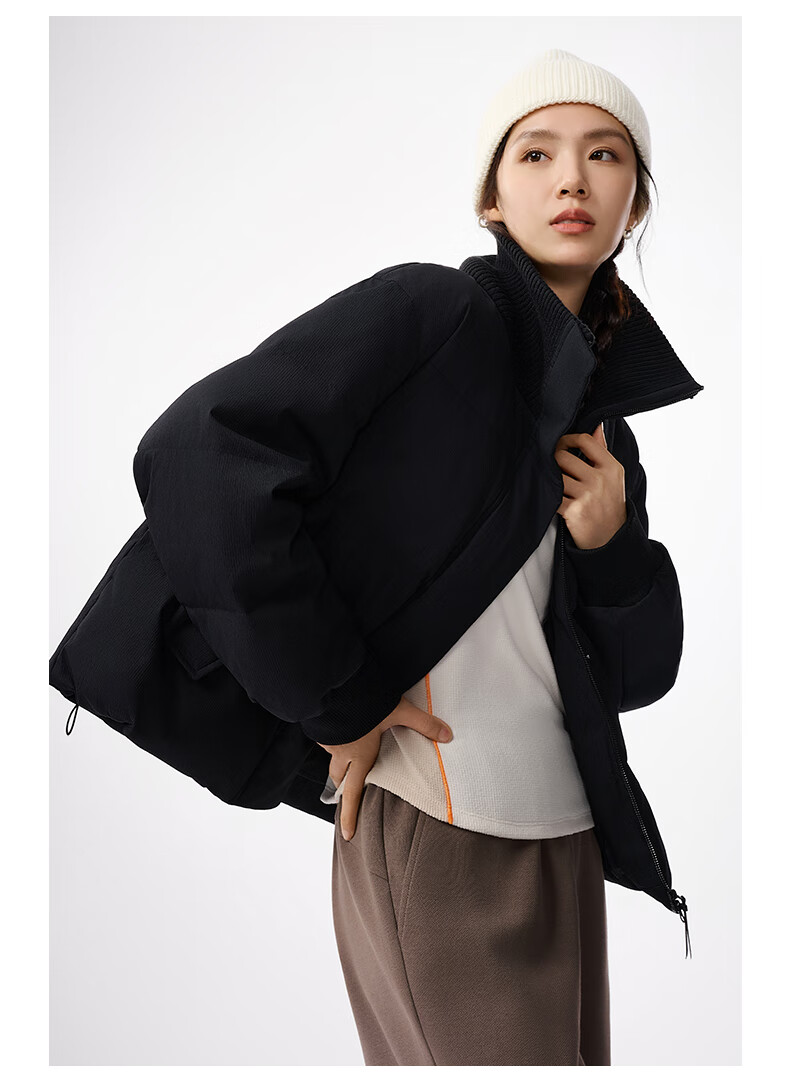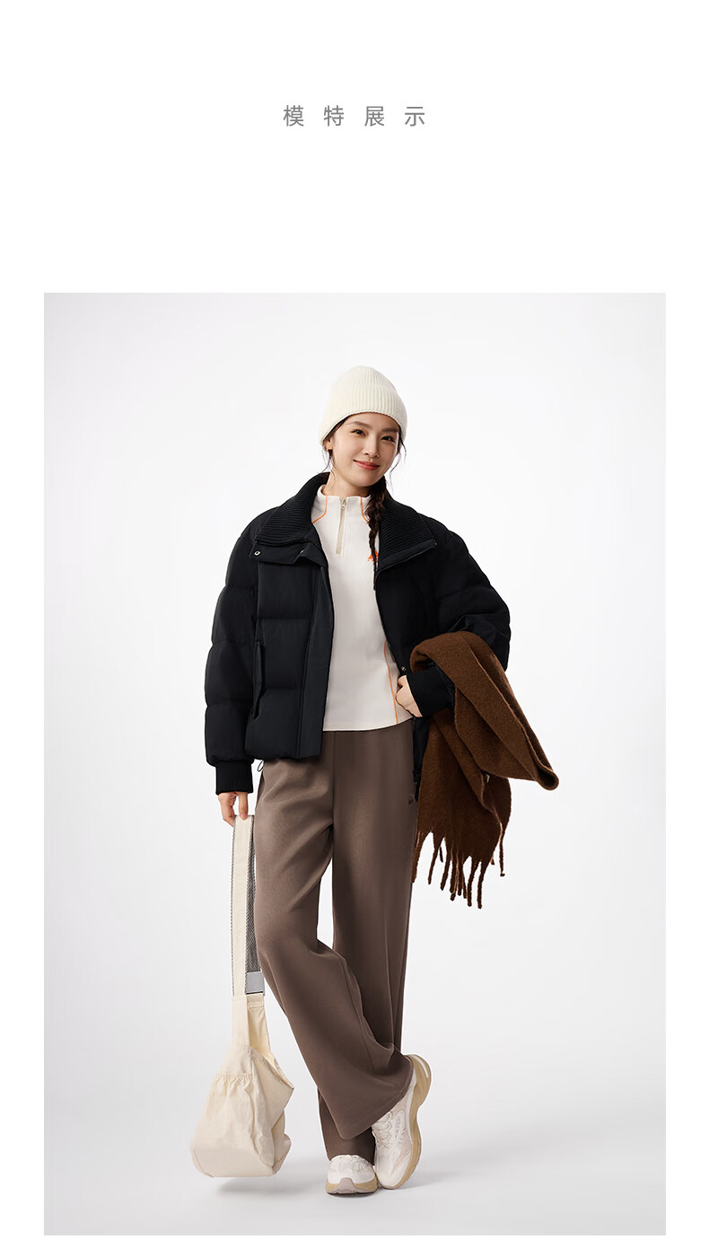 安踏(ANTA)【关晓彤同款】短款羽绒服防泼水女针织拼接翻领棉服162547914 【75%鸭绒】枫叶咖-3