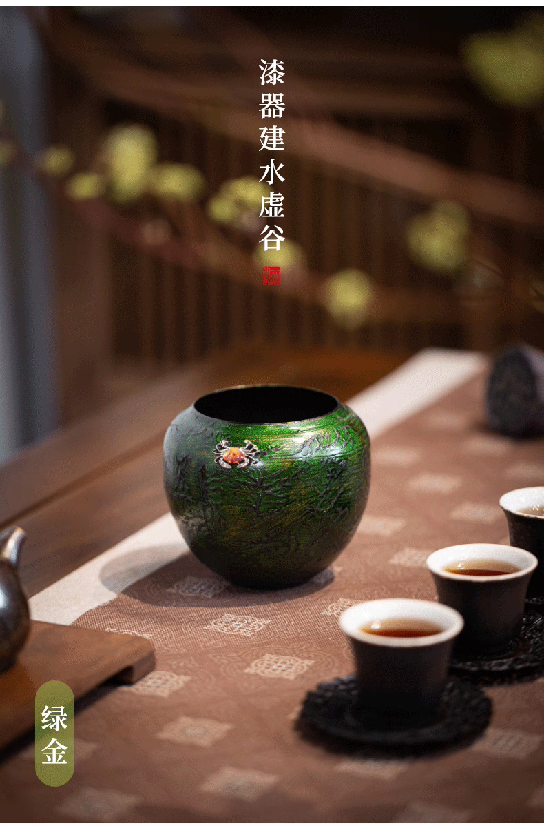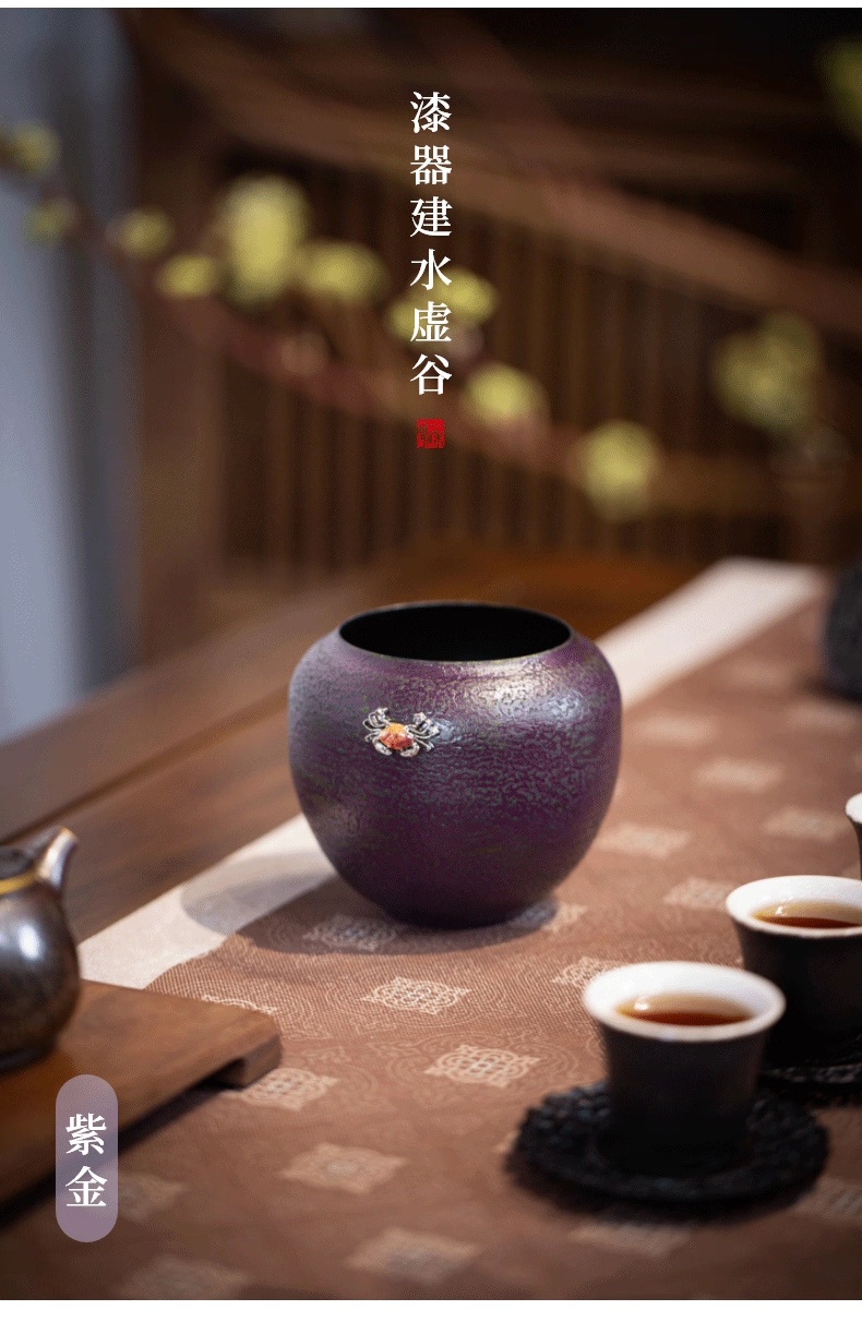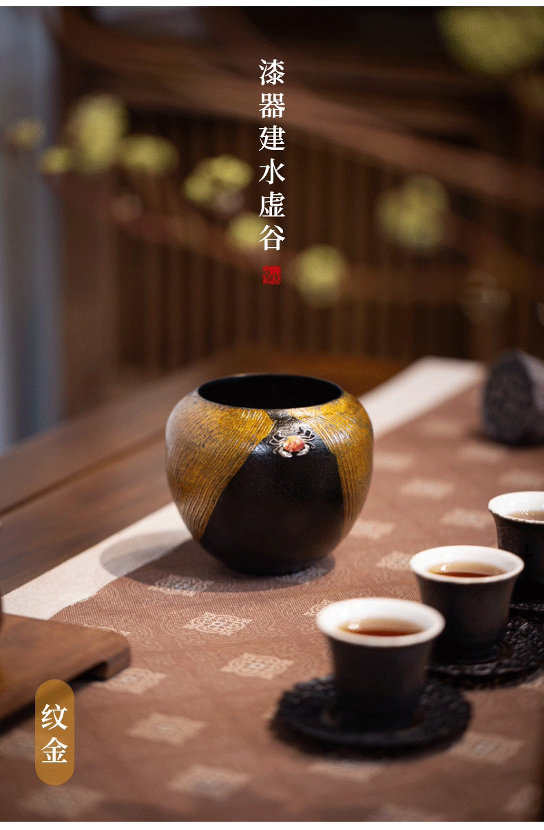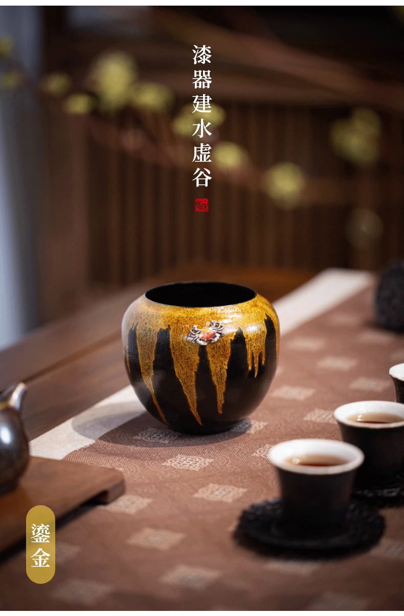 漆器建水/虚谷/茶道配件建水漆器建水茶具零配小茶缸水方