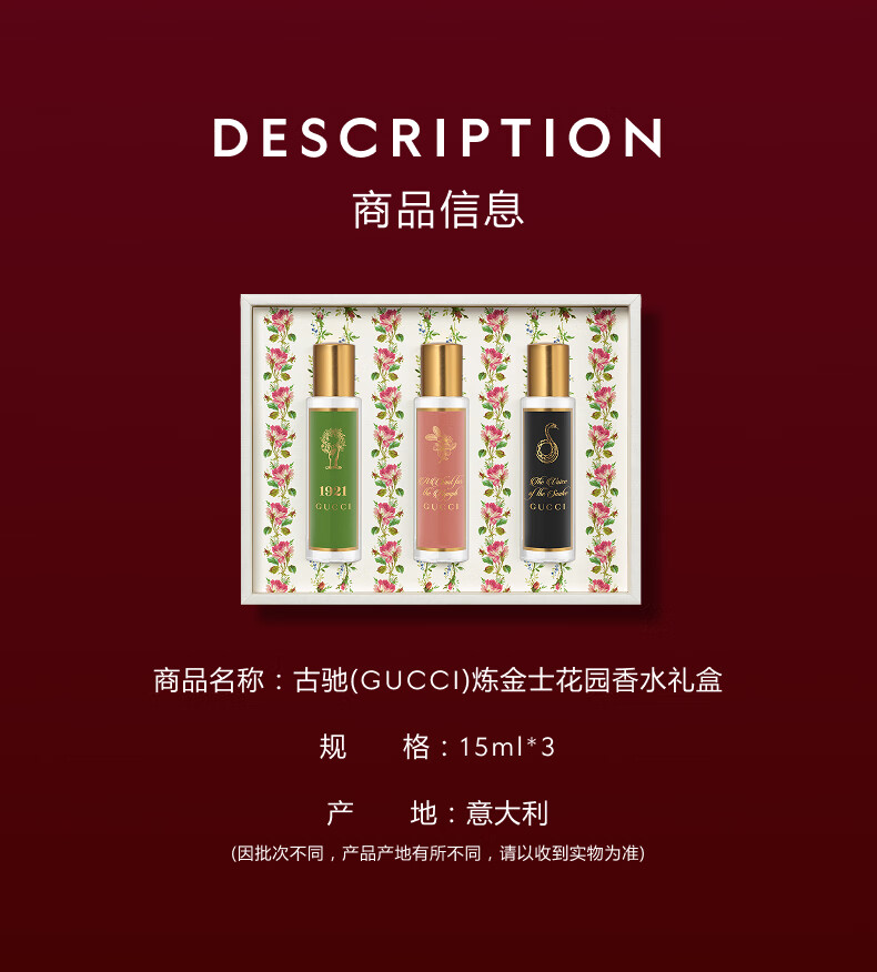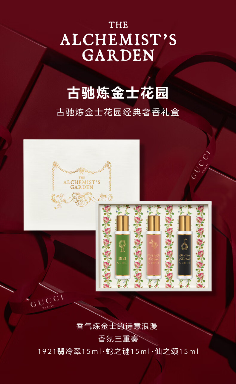 古驰炼金士花园经典奢香礼盒(蛇之谜香水15ml+翡冷翠香水15ml+仙之颂香水15ml)