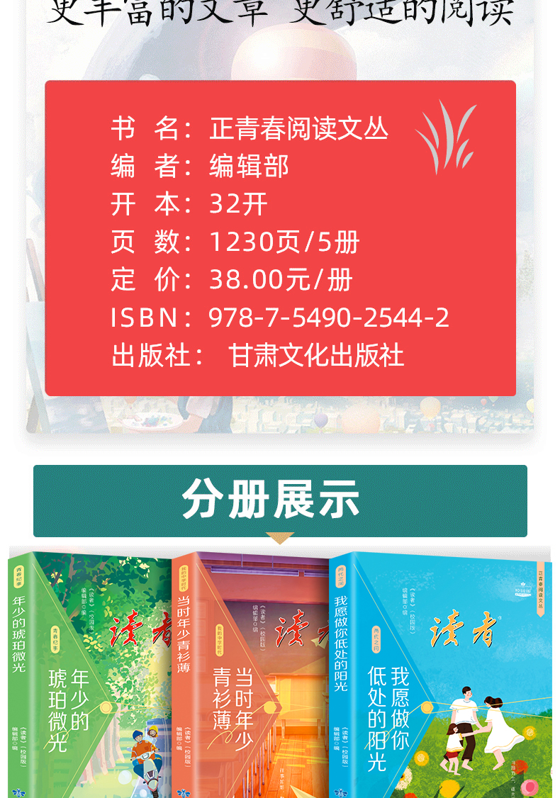 读者校园版 正青春文丛套装 全五册