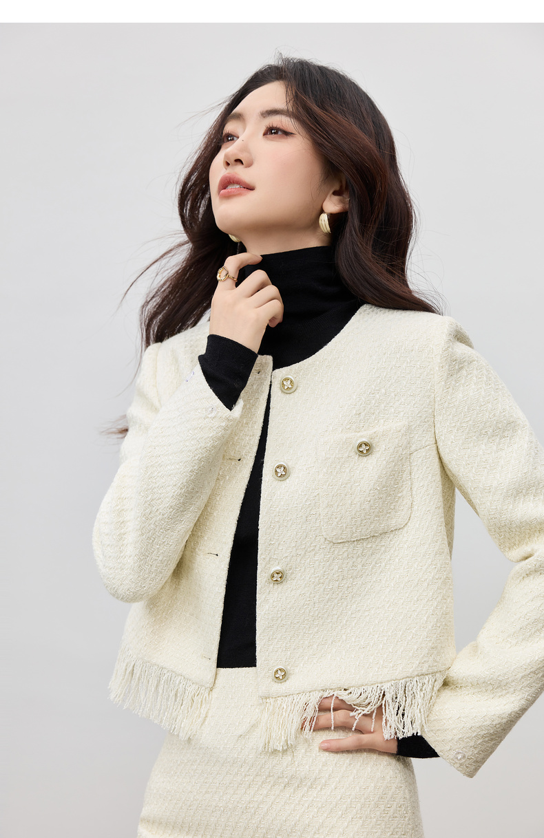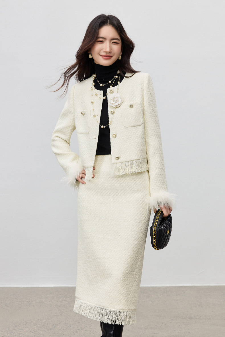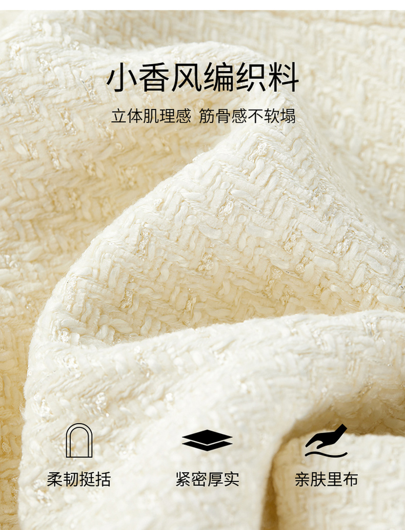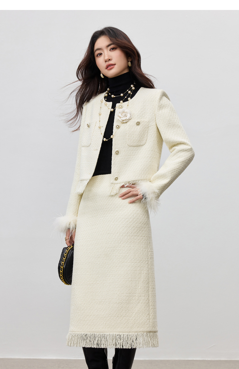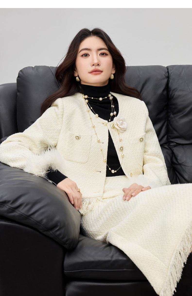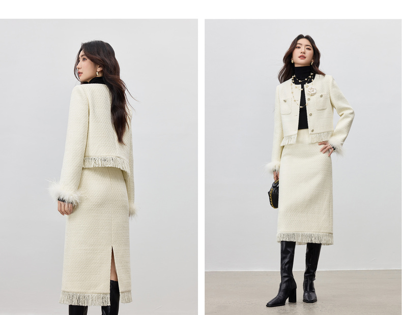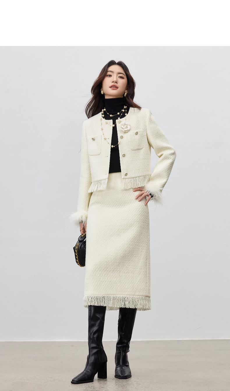 【内购】【免搭配套装】优雅小香风通勤厚保暖圆领垫肩外套中腰开叉直筒裙-154ZA3736