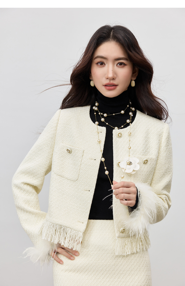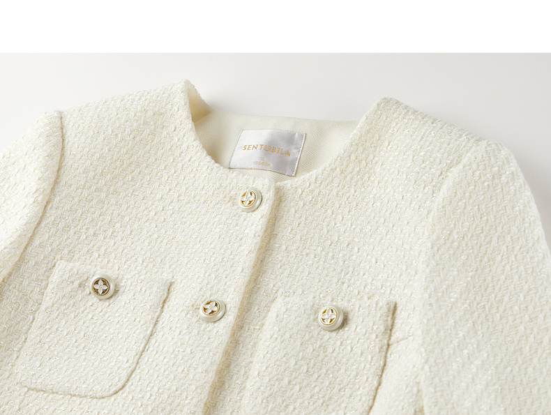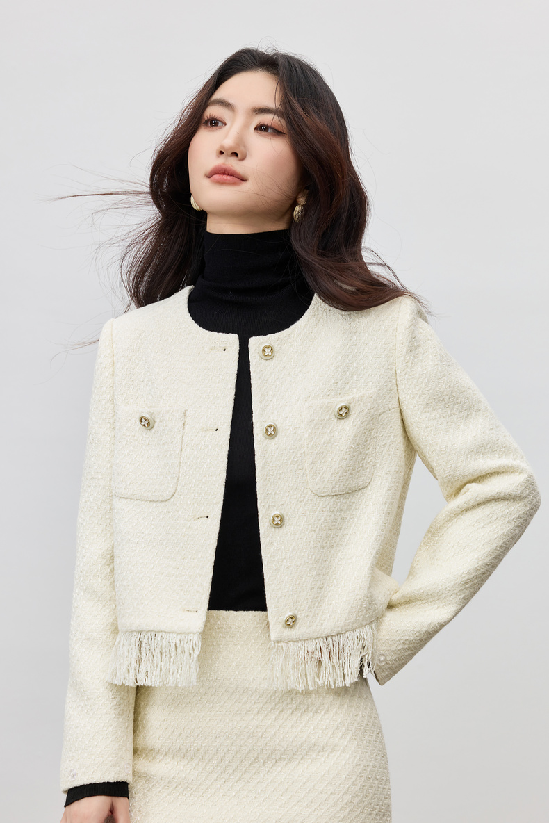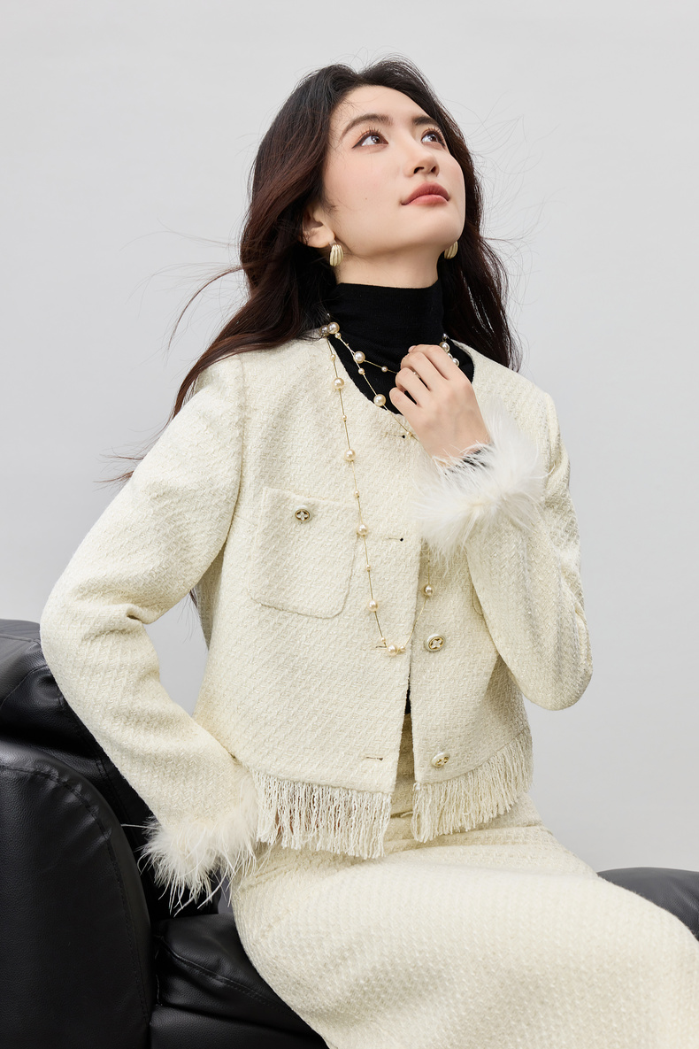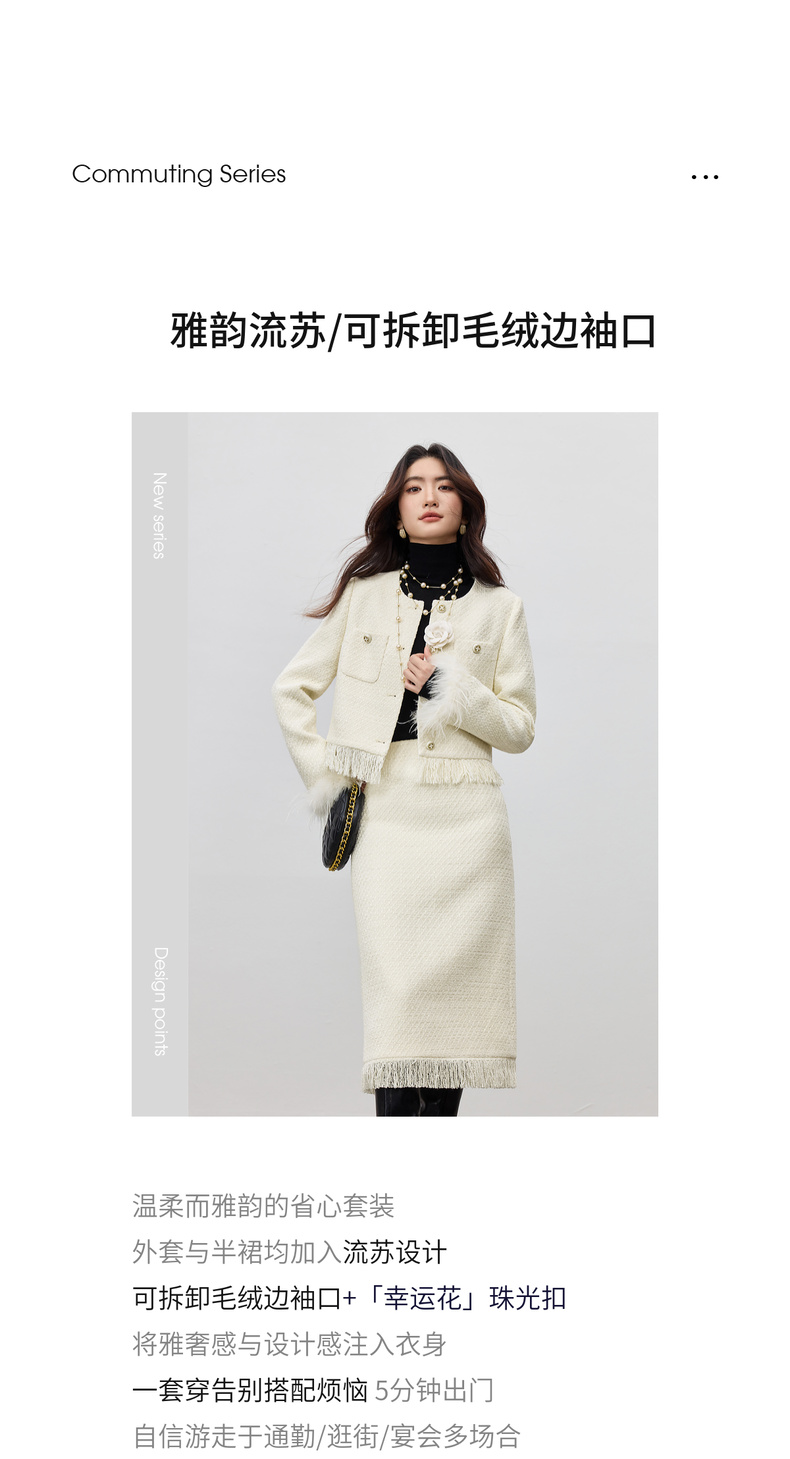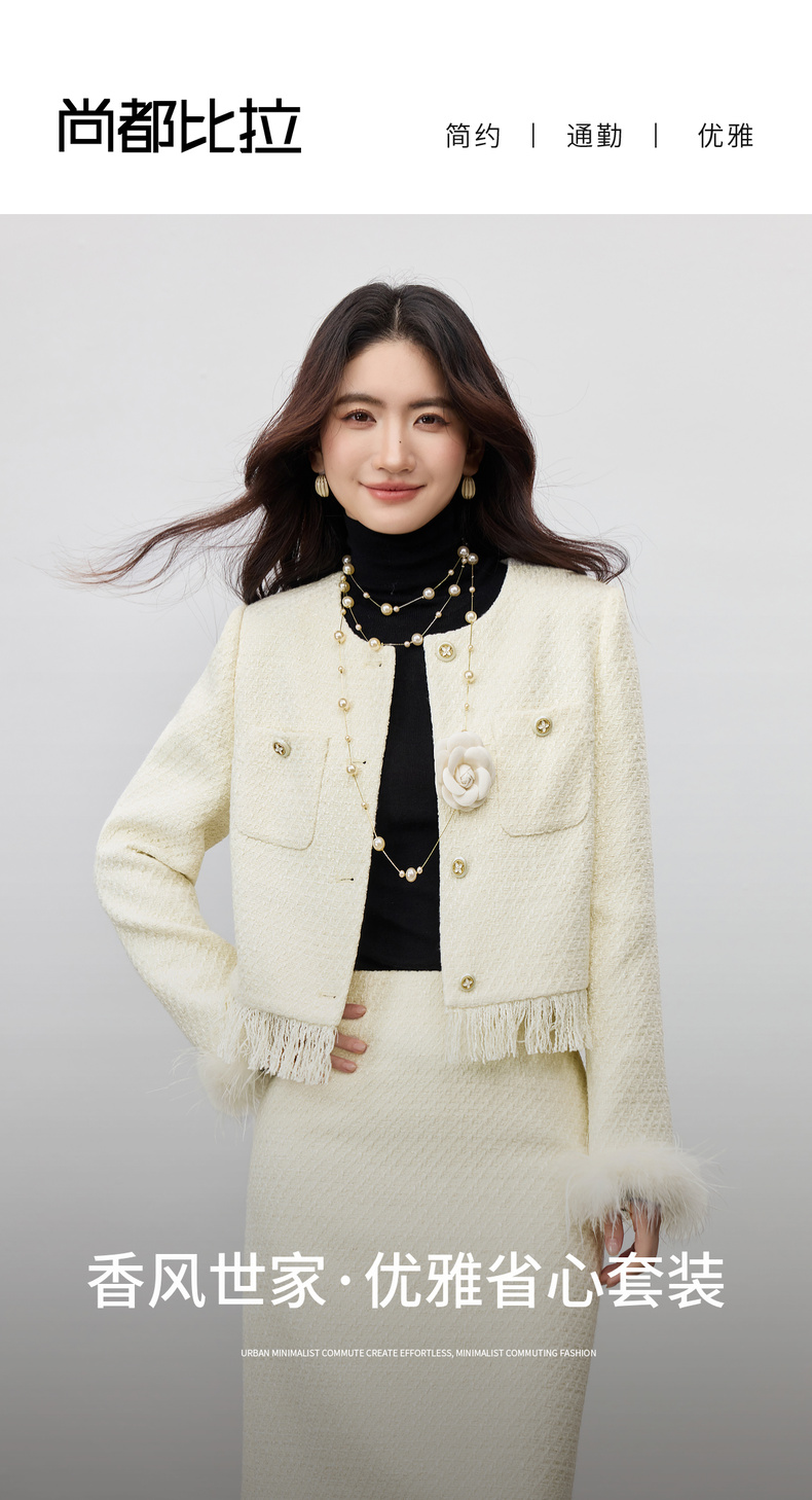 【内购】【免搭配套装】优雅小香风通勤厚保暖圆领垫肩外套中腰开叉直筒裙-154ZA3736