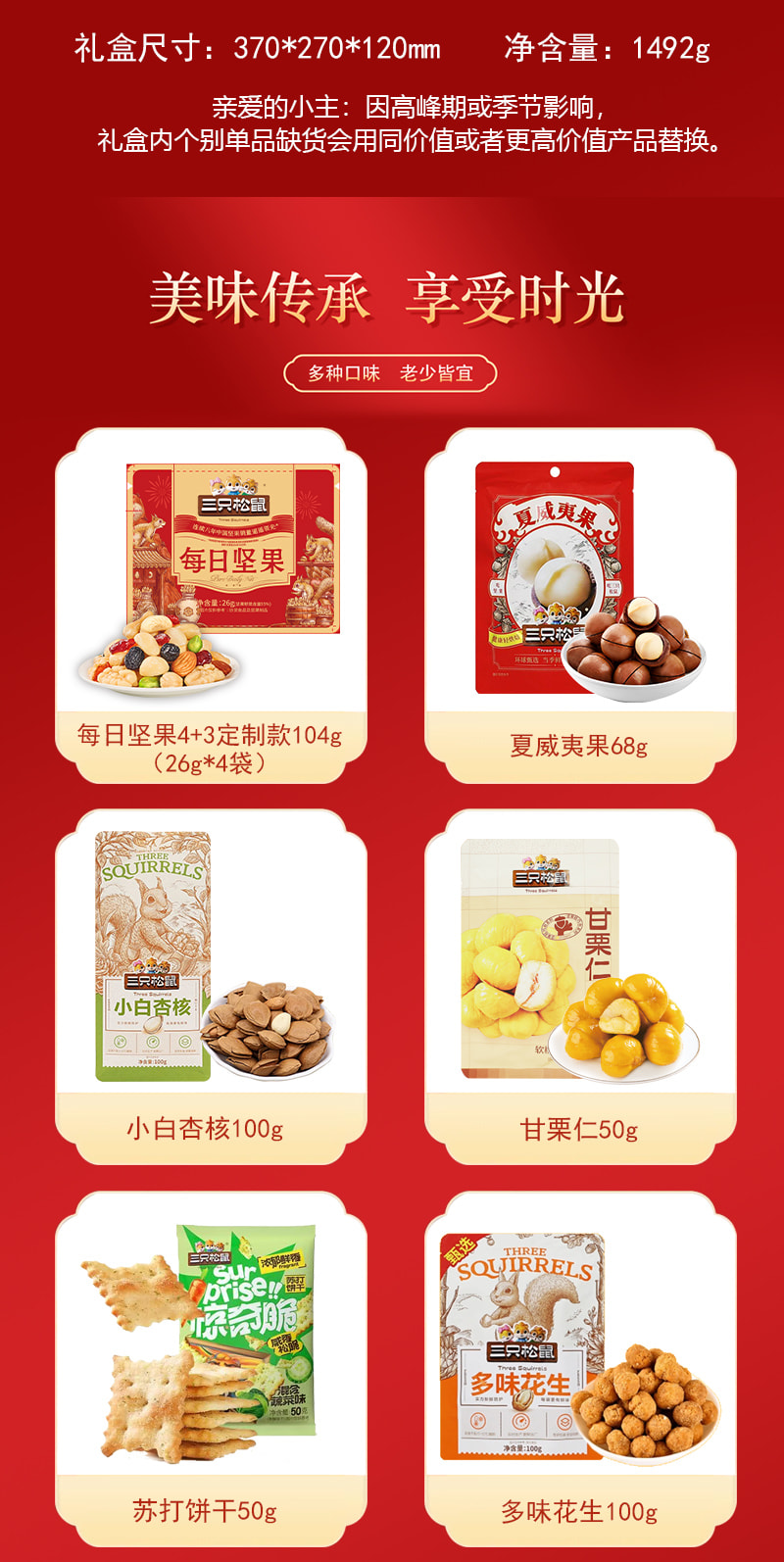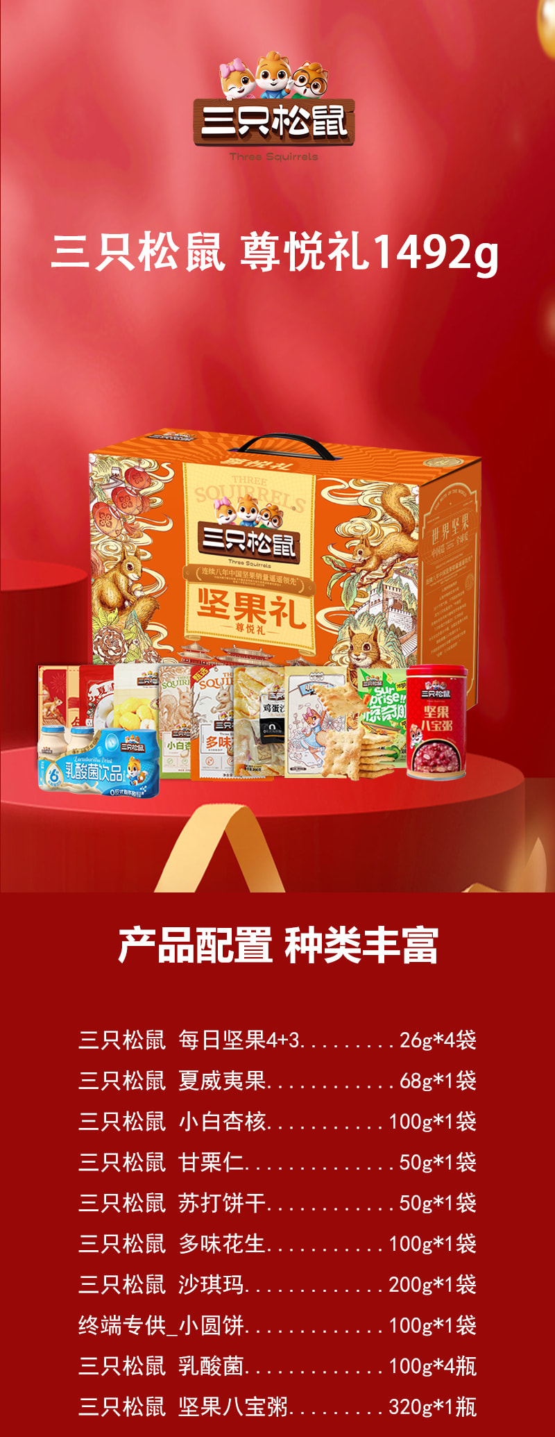 三只松鼠 尊悦坚果礼盒休闲零食1492g-XJ
