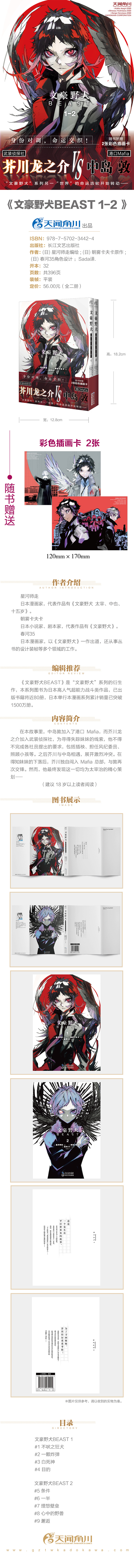 文豪野犬BEAST. 1-2(随书附赠:彩色插画卡2张)身份对调,命运交织! 武装侦探社芥川龙之介VS港口Mafia中岛敦