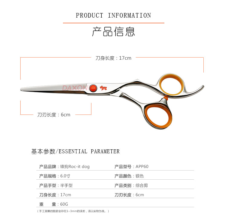 锋狗剪刀APP60 6寸窄刃加厚手柄全手 型结构刀、适合湿发 精准窄刃结构刀