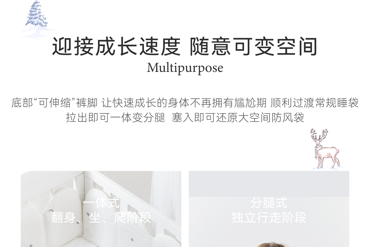 Domiamia一体睡袋婴儿新生儿恒温宝宝秋冬豆豆绒可拆卸袖(双层/薄夹棉)