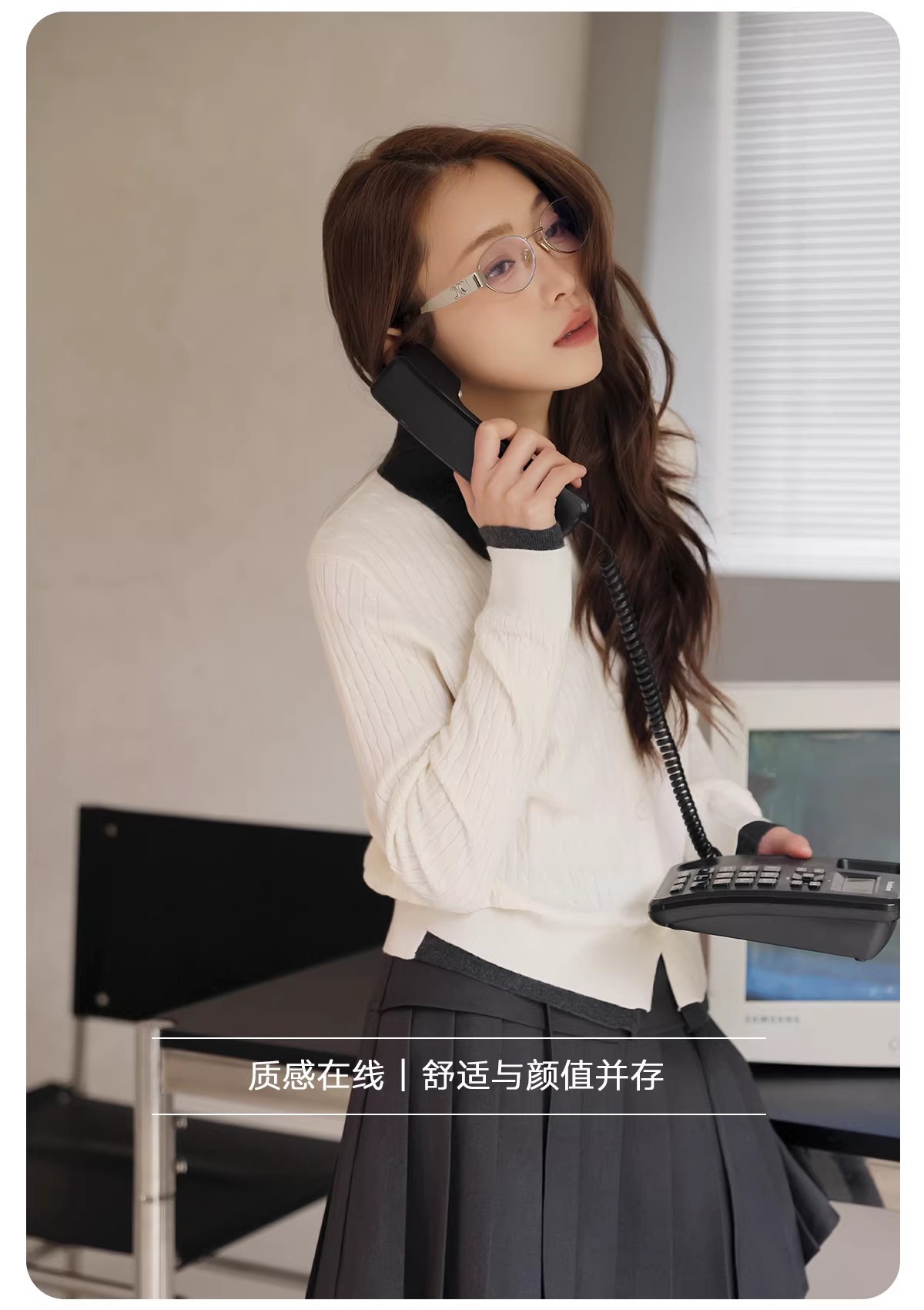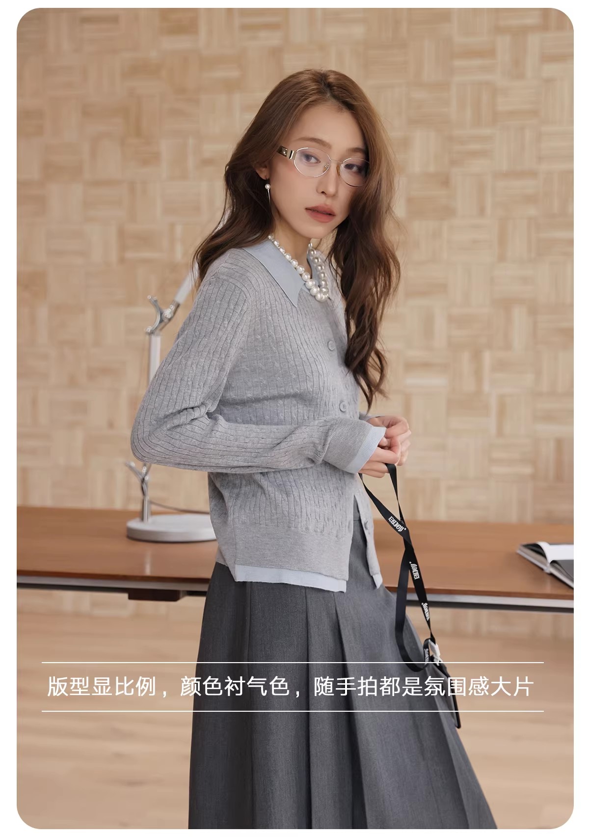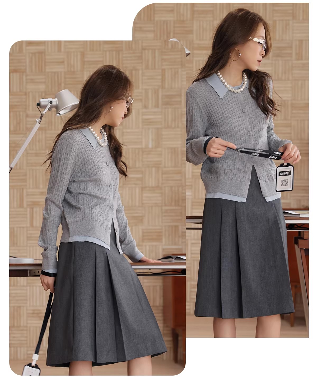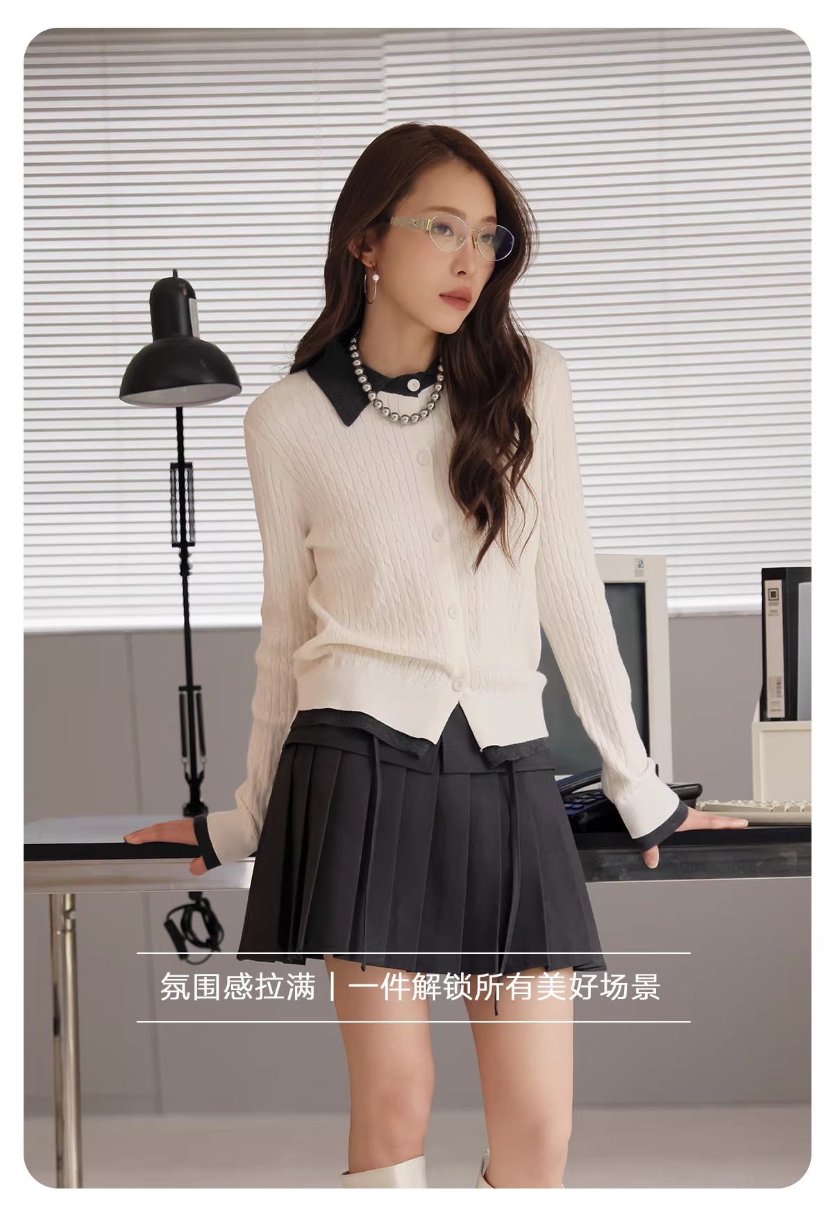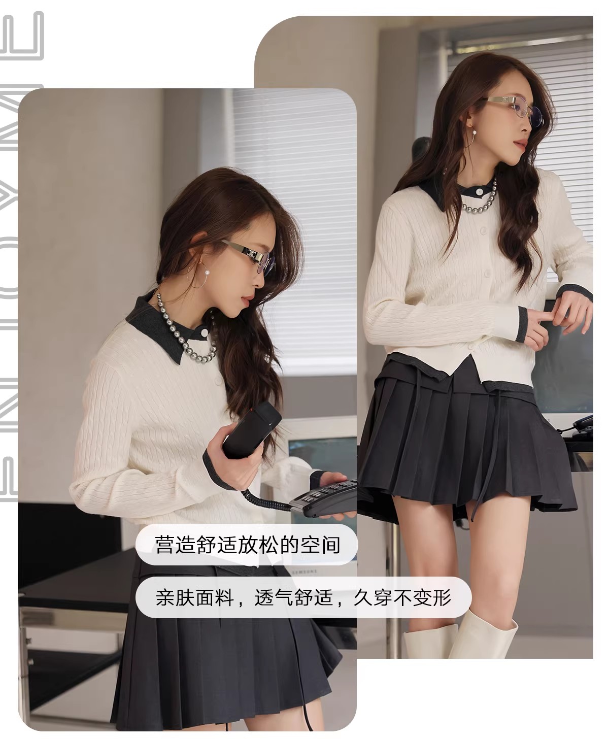 【门店同款】ENJOY春季“柔权主义”假两件拼接针织开衫 169253177
