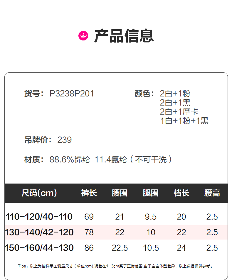 笛莎Deesha [3双装]笛莎女童弹力连裤袜春秋大童女孩打底袜宝宝儿童舞蹈裤袜