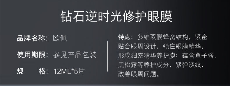 欧佩钻石鱼子酱眼膜贴去黑眼圈去眼袋淡化细纹保湿提拉紧致缓解眼疲劳