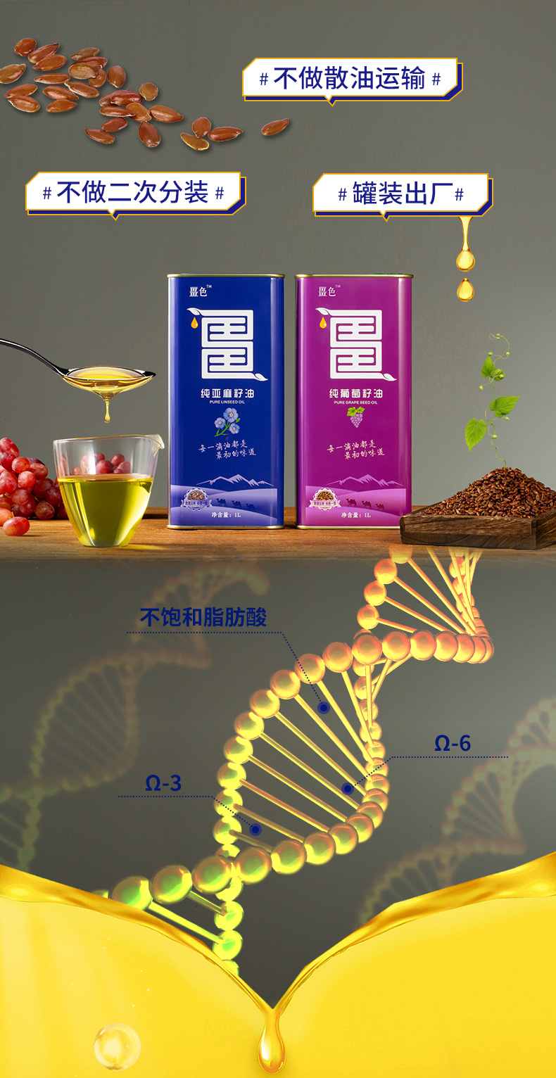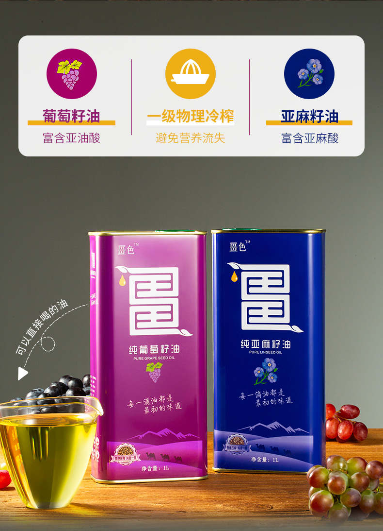 【节日礼盒】畺色 冷热礼盒(葡萄籽油1L+亚麻籽油1L)2L