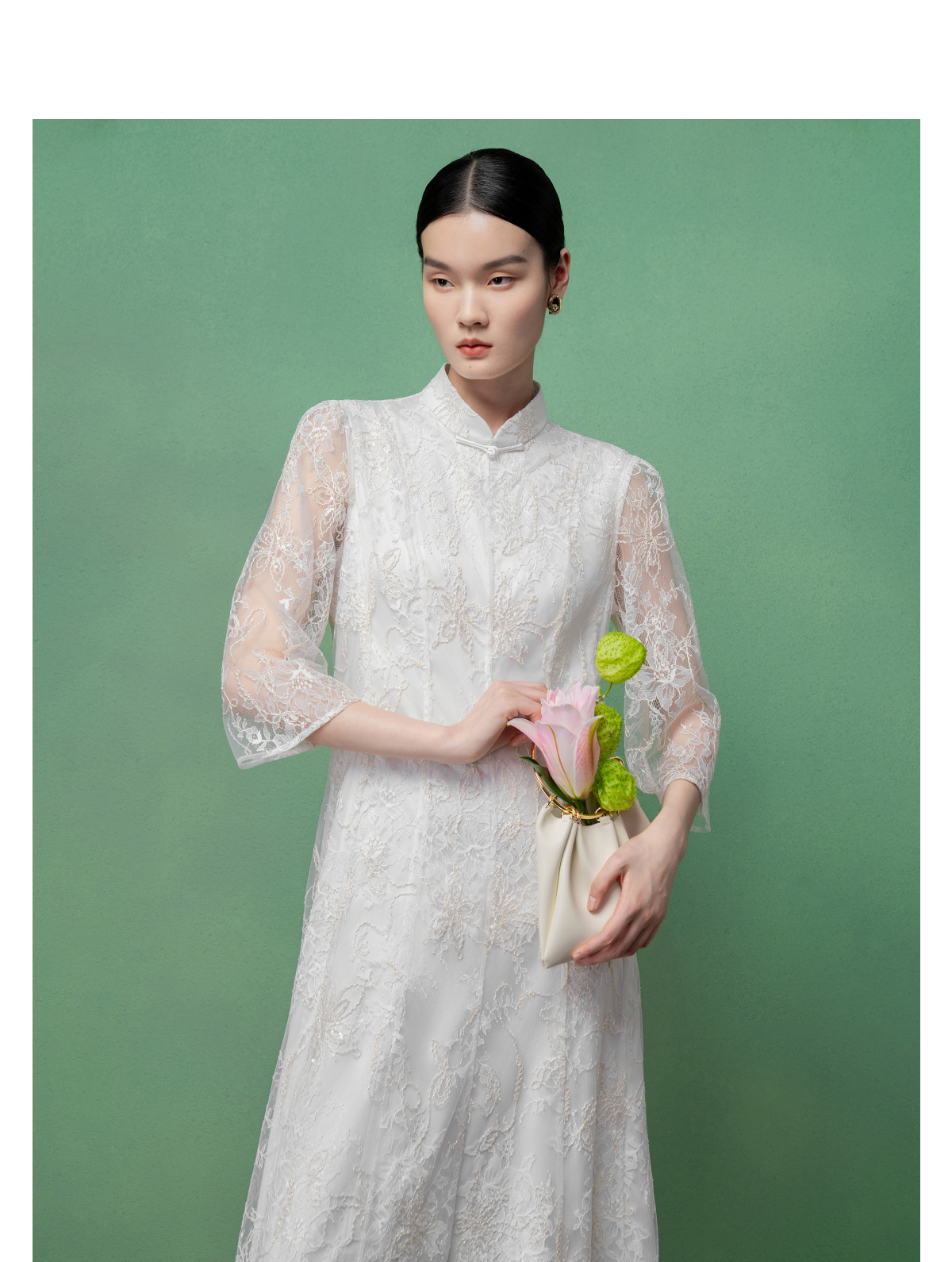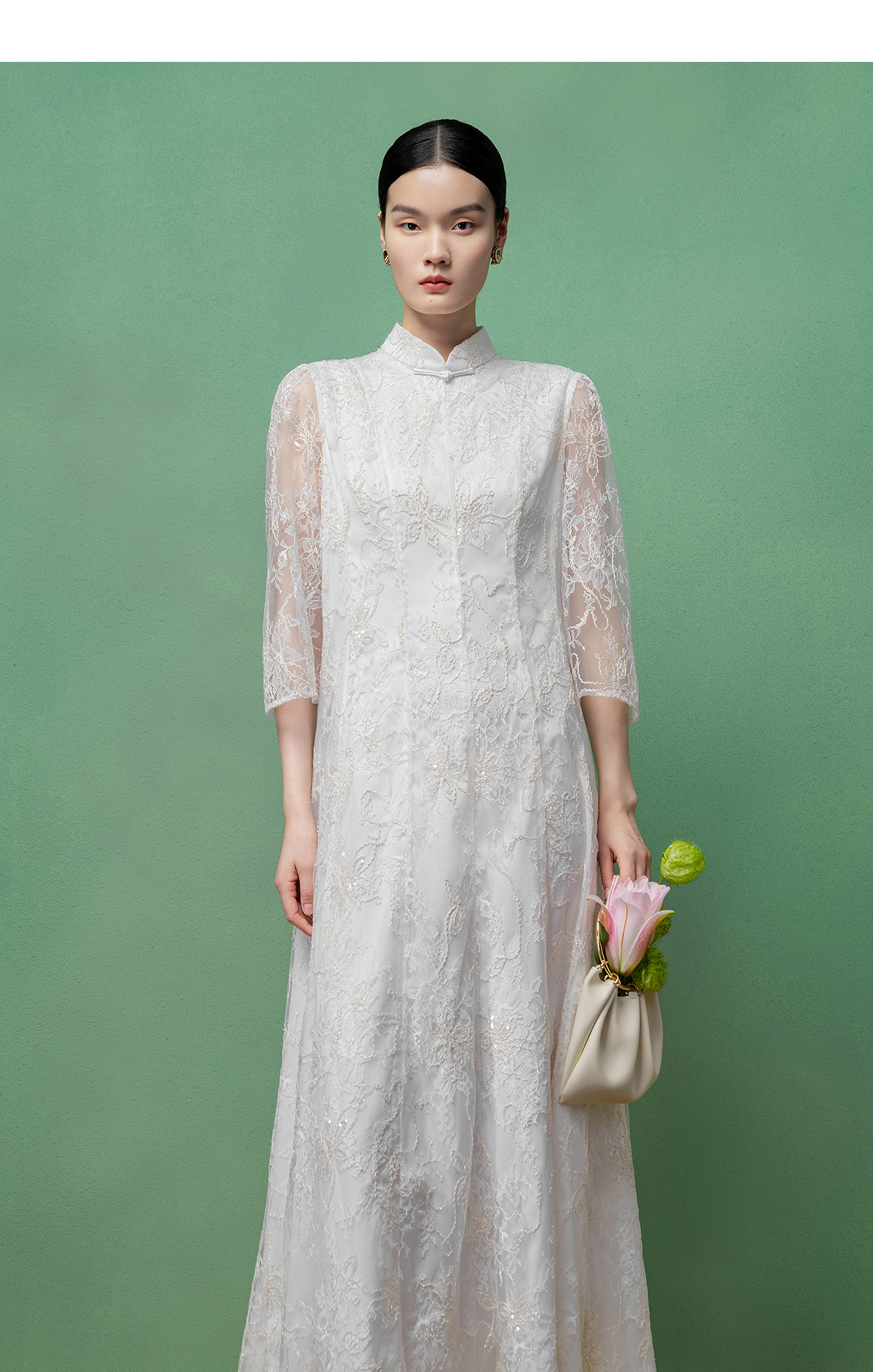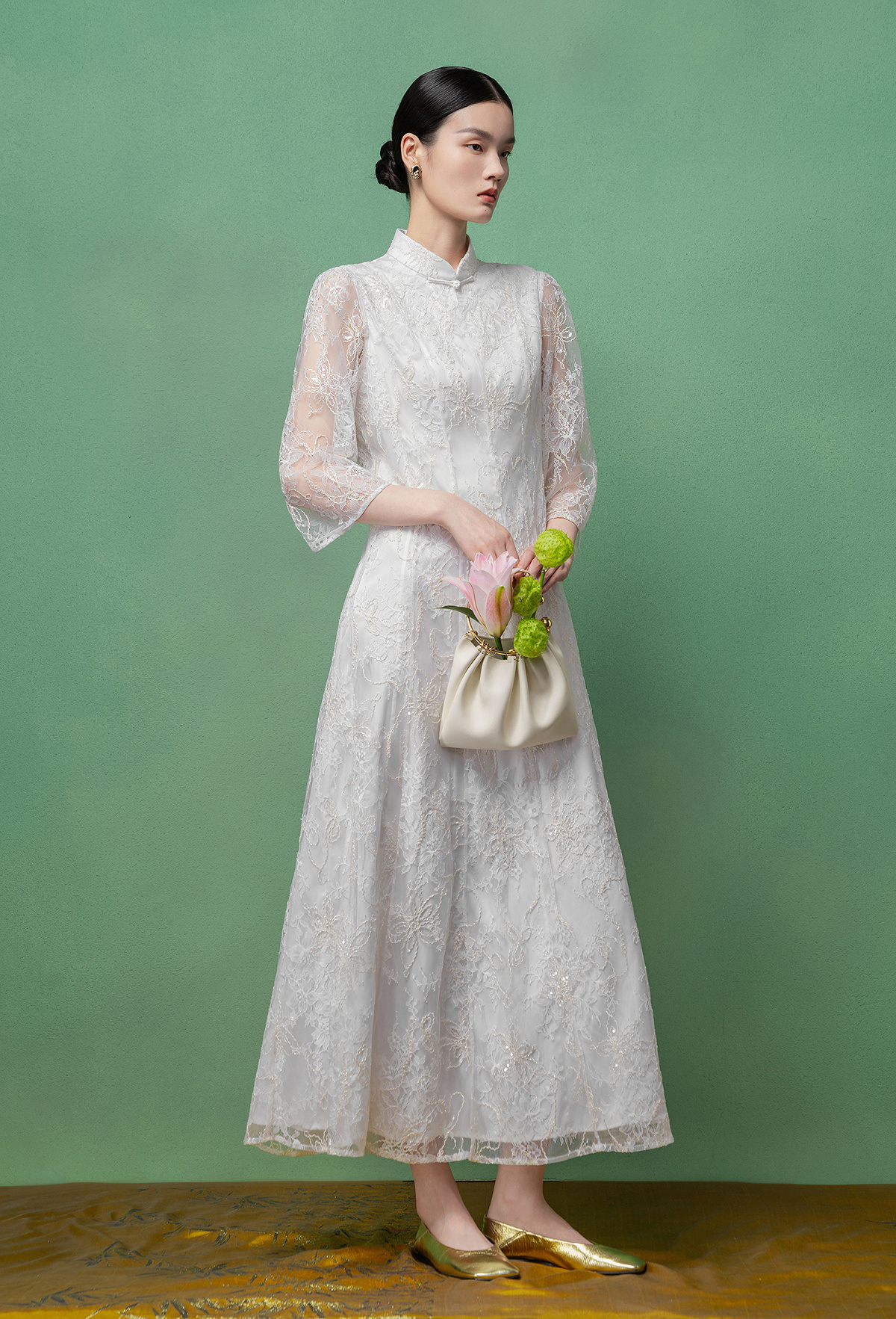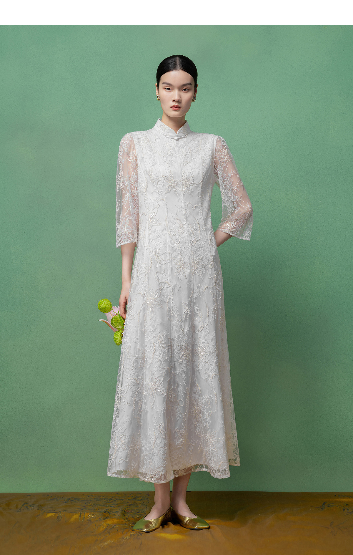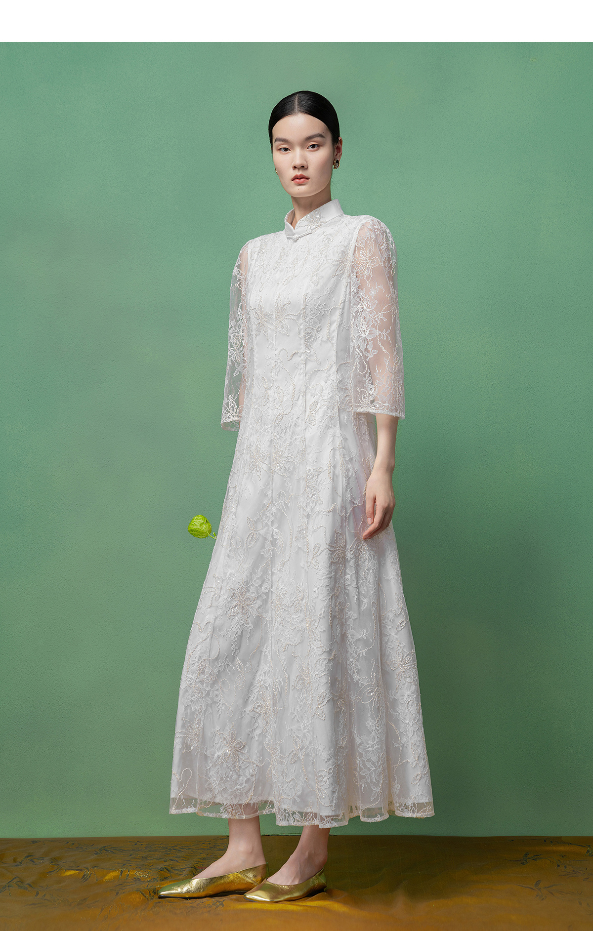 【林栖设计小店】金线蕾丝|绣花肌理感国风2026早春新款修身连衣裙1961134