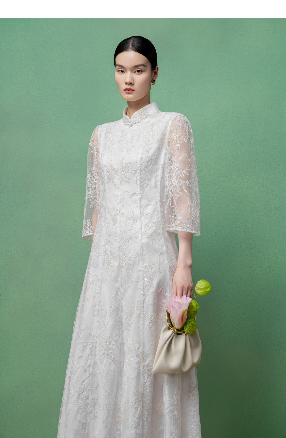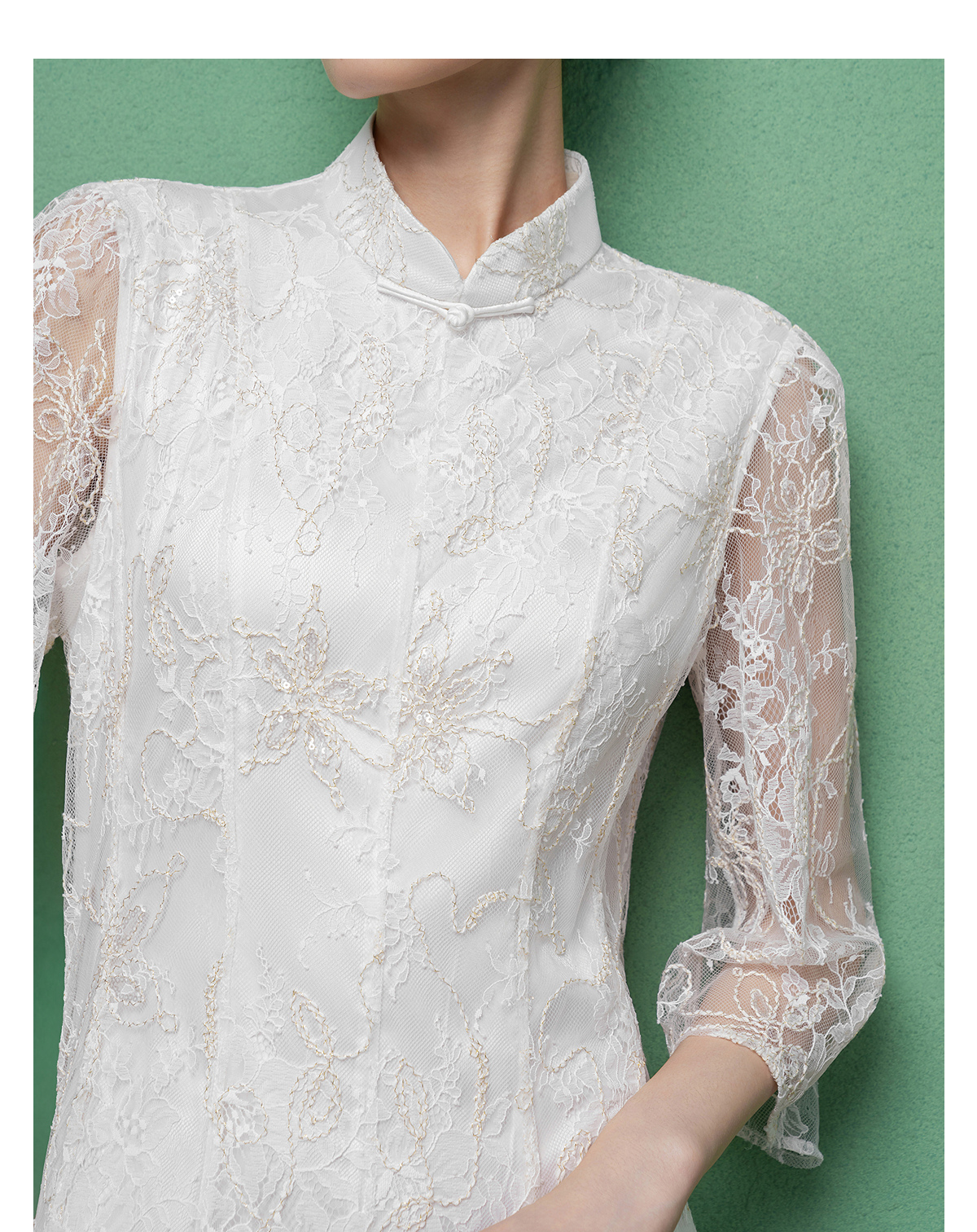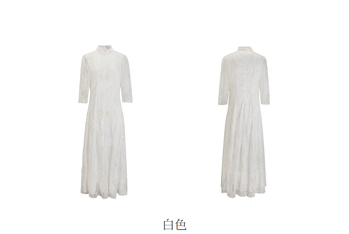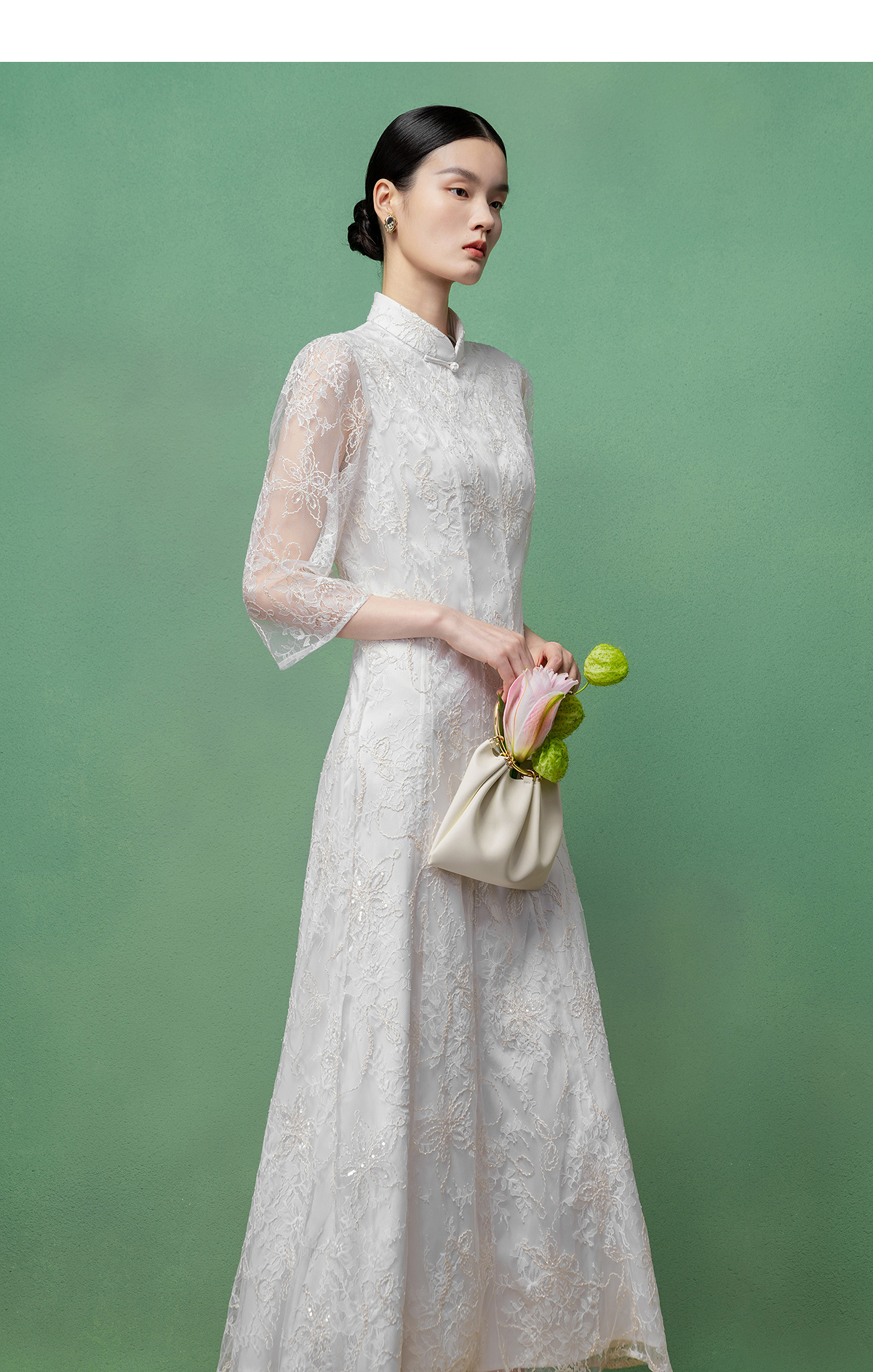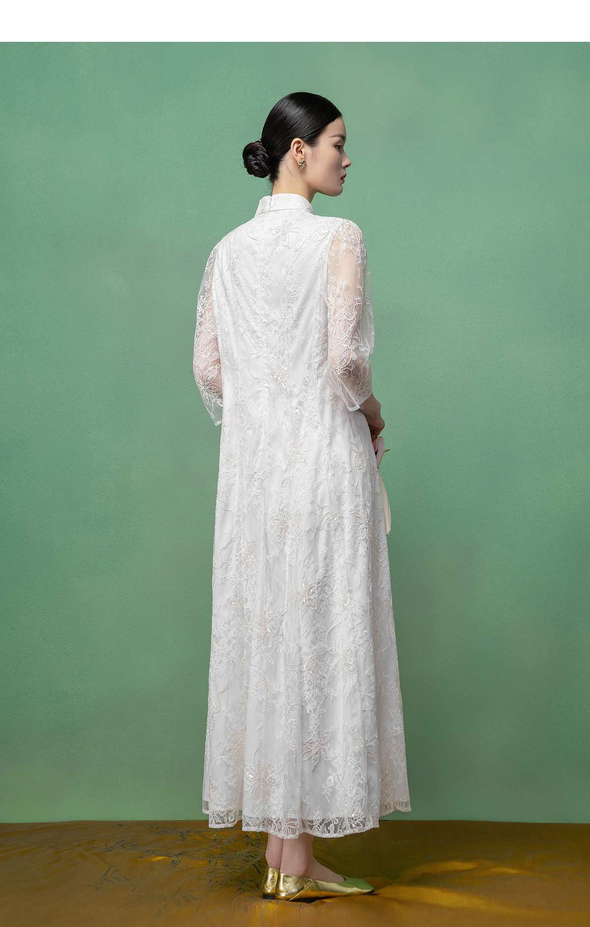 【林栖设计小店】金线蕾丝|绣花肌理感国风2026早春新款修身连衣裙1961134